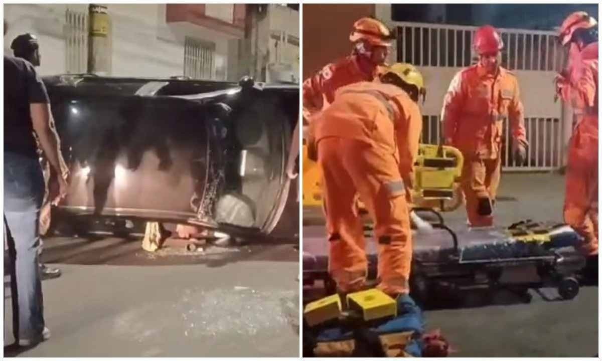 Mãe e filho ficam presos às ferragens após carro capotar em bairro de BH