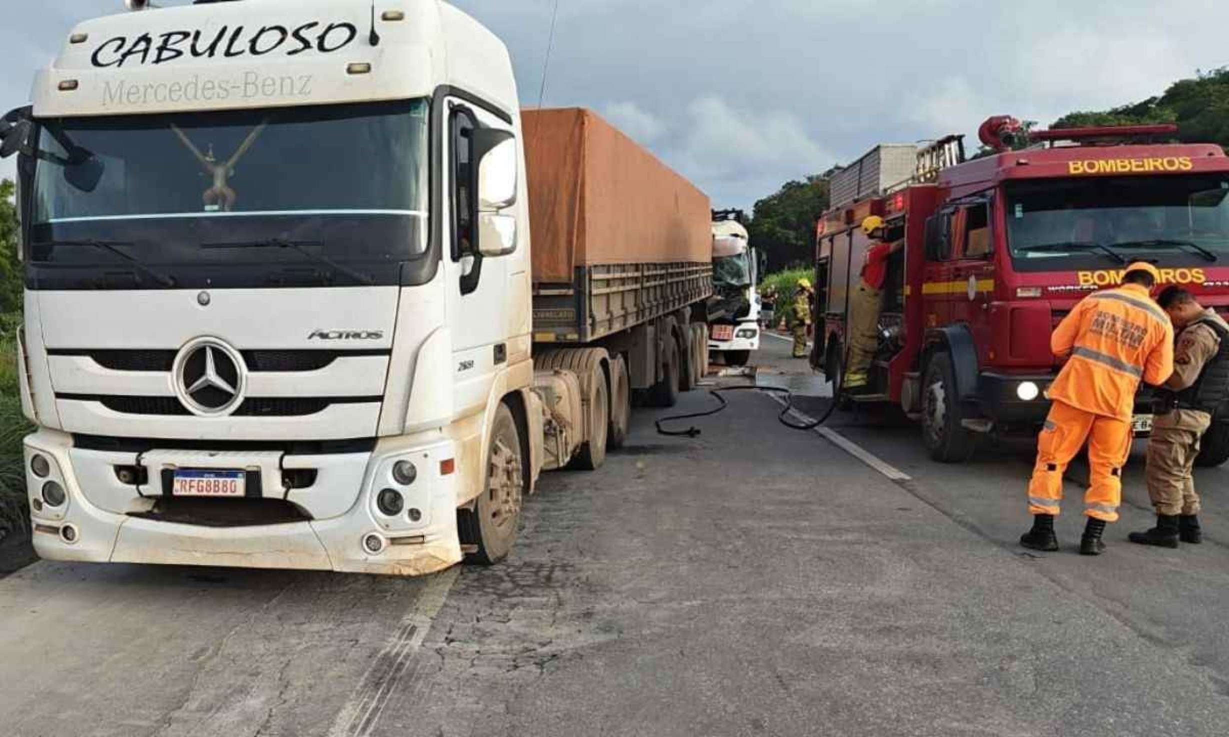 Segundo a Polícia Rodoviária Federal (PRF), o acidente ocorreu na pista sentido Belo Horizonte. Registros de quem passa pela região mostram que um caminhão com botijões de gás bateu em uma carreta de carga.