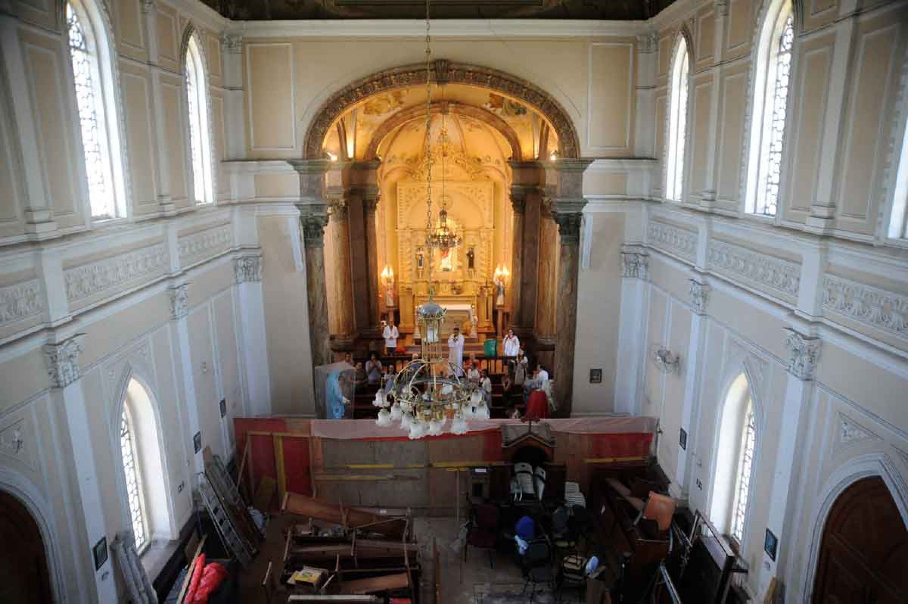 A decisão, foi tomada há dois anos, com anuência do Instituto Estadual do Patrimônio Histórico e Artístico e Minas Gerais (Iepha) e da Prefeitura de Belo Horizonte, responsáveis pelo tombamento, após queda da pintura do forro, perto da asa de um anjo. Com um fragmento azul na mão, desprendido na época, padre George explica que, felizmente, não havia ninguém no local. “Imediatamente, comuniquei aos órgãos do patrimônio, e colocamos o tapume. Com isso, dos 300 assentos, temos hoje apenas 30. Também não temos mais casamentos e batizados”, afirma o pároco que, todo domingo, às 11h, celebra missa em aramaico, a língua que Jesus falava. Lembrando que toda a estrutura do templo se encontra em bom estado, padre George estima em R$ 8 milhões o valor necessário para terminar a obra iniciada em 2008. “Estamos numa constante via-sacra para conseguir os recursos, com grande participação da comunidade.”