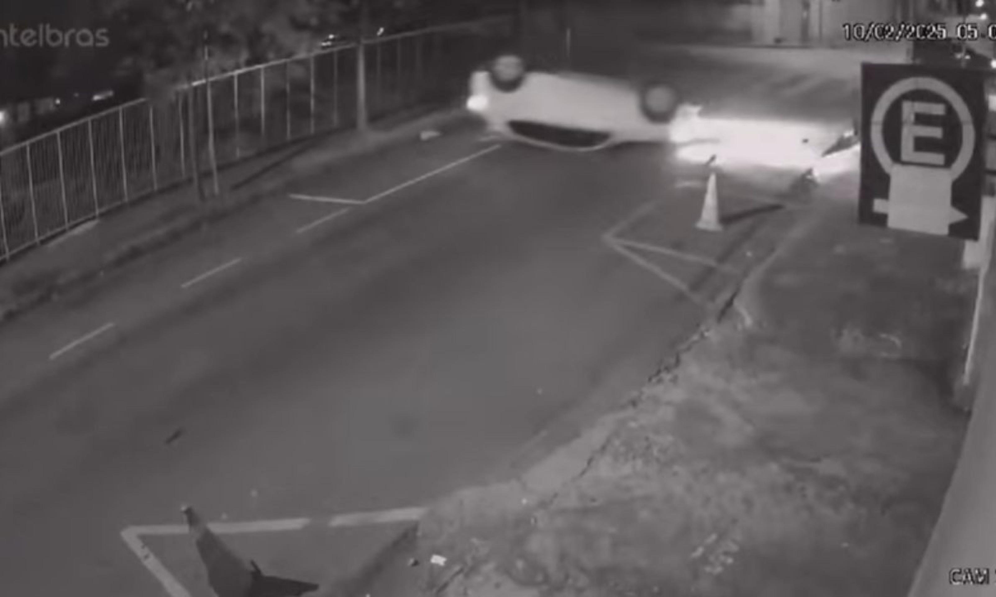 Imagens de câmera de segurança mostram que o carro atingido capotou, seguiu girando e desceu alguns metros pela rua, com as rodas para o ar. No veículo estavam duas mulheres, mãe e filha, que ficaram feridas. Ainda não se tem informações sobre o estado de saúde das vítimas.