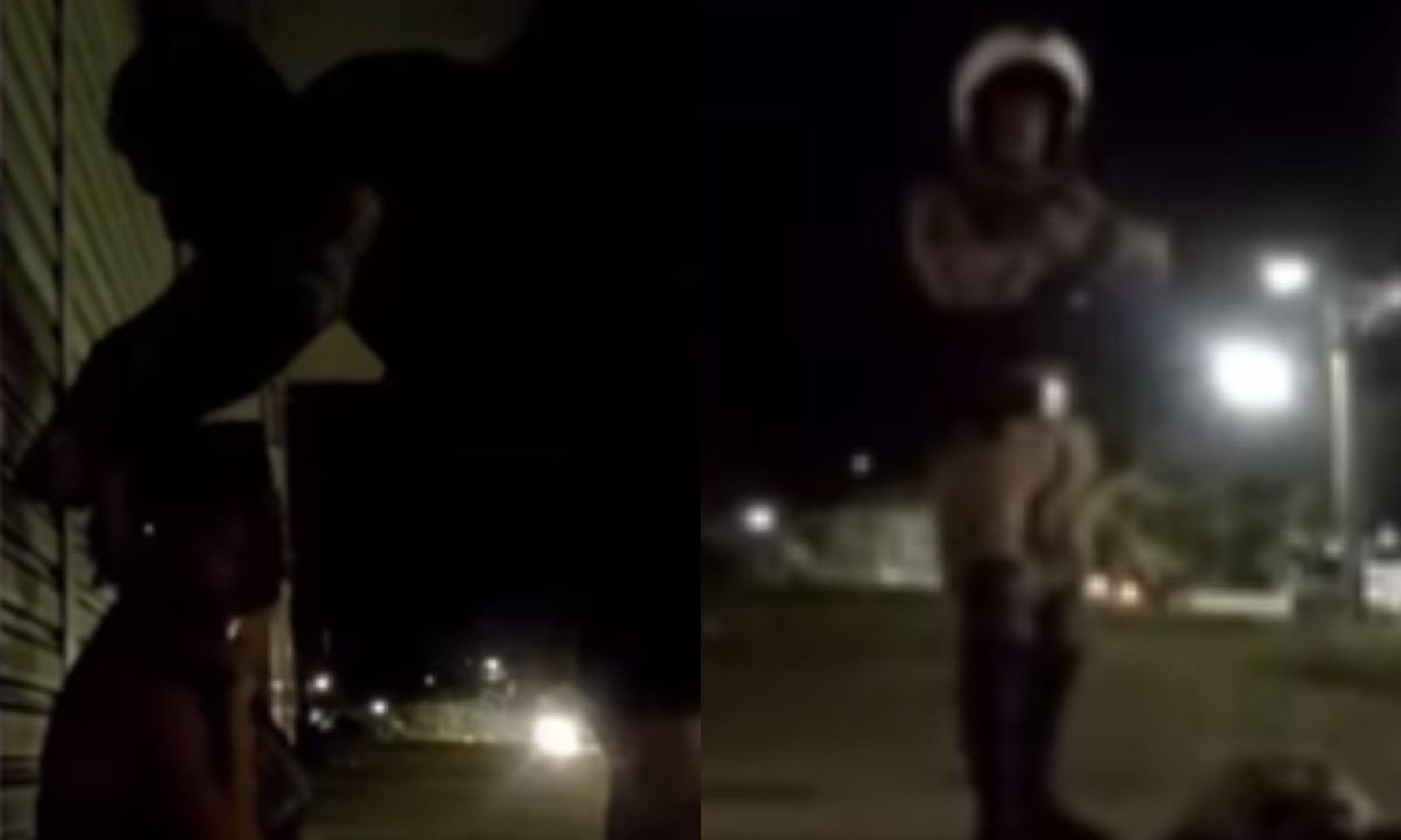 O homem, então, arrastou a mulher pelas ruas do bairro, jogou gasolina sobre seu corpo e a ameaçou mais vezes de morte, utilizando a arma e um isqueiro. Em seguida, ele a levou para uma farmácia e comprou uma tesoura. Novamente, o homem seguiu puxando a mulher pelas ruas até parar na Rua Crisântemo, onde filmou o momento em que cortava, à força, o cabelo da mulher, dando tapas no rosto dela.