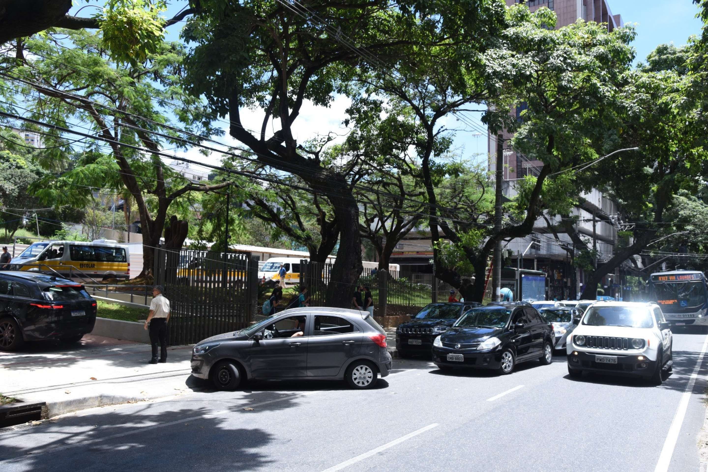 Como em qualquer escola particular, filas de carros são comuns, mas, nesse caso, ela toma a faixa direita da avenida e deixa apenas uma livre para os demais motoristas. Nessa segunda-feira à tarde (24/2), a reportagem do Estado de Minas esteve no local e presenciou uma fila de carros à espera, que se estendia por mais de 350 metros. Com isso, o tráfego fica lento e tumultuado. Motoristas impacientes buzinam, tentando avançar em meio ao engarrafamento que se forma nos horários de pico.