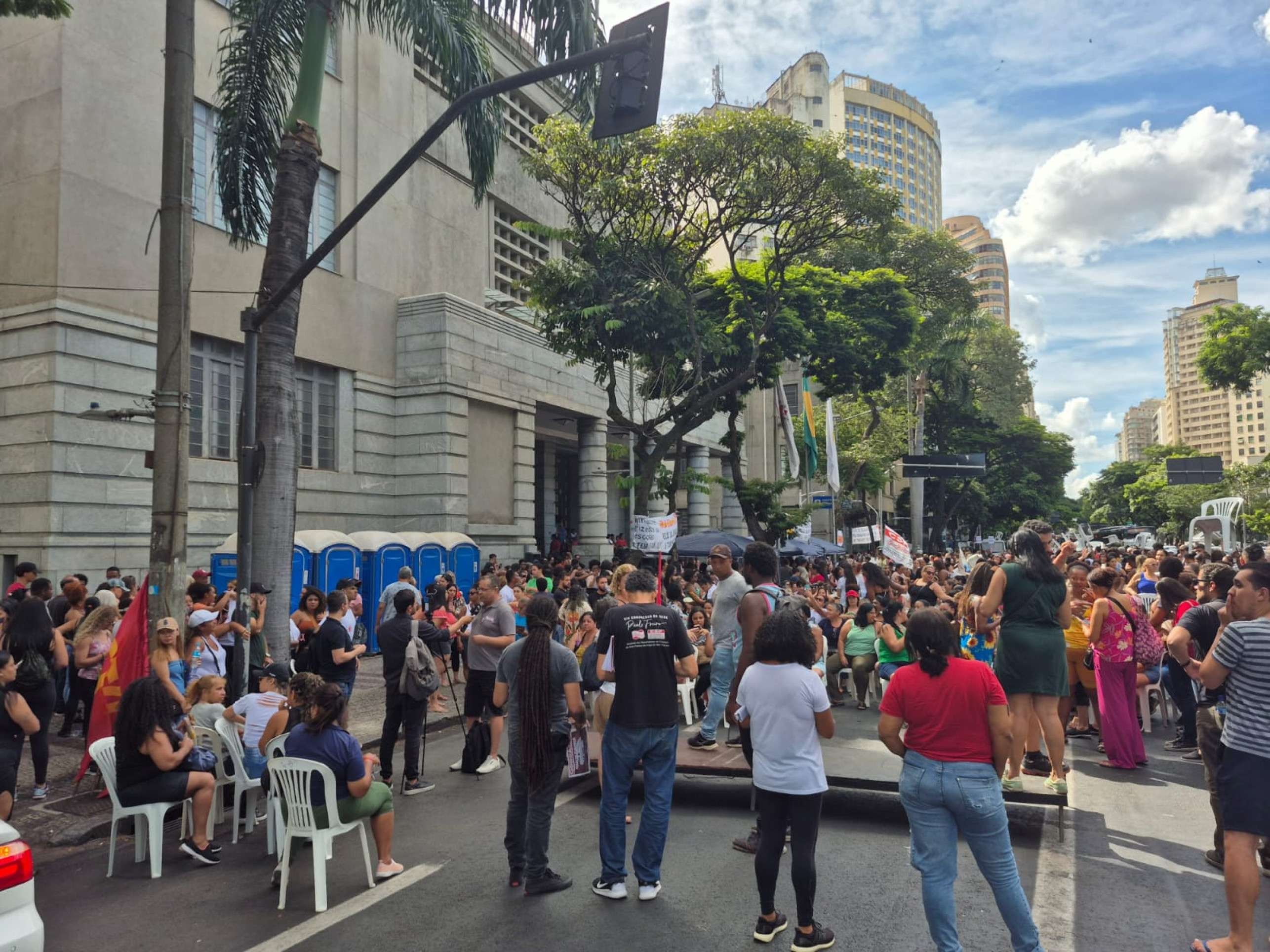 Os trabalhadores terceirizados da rede municipal de ensino de Belo Horizonte decidiram manter a paralisação iniciada nesta segunda-feira (24/2). A decisão foi tomada após uma assembleia realizada nesta tarde, que reuniu cerca de 3 mil profissionais em frente à sede da administração municipal, na Avenida Afonso Pena. A categoria reivindica melhores condições de trabalho, aumento salarial e redução da jornada sem perda de remuneração. Uma nova assembleia para decidir os rumos da greve foi marcada para a próxima quarta-feira (26/2), às 16h30.