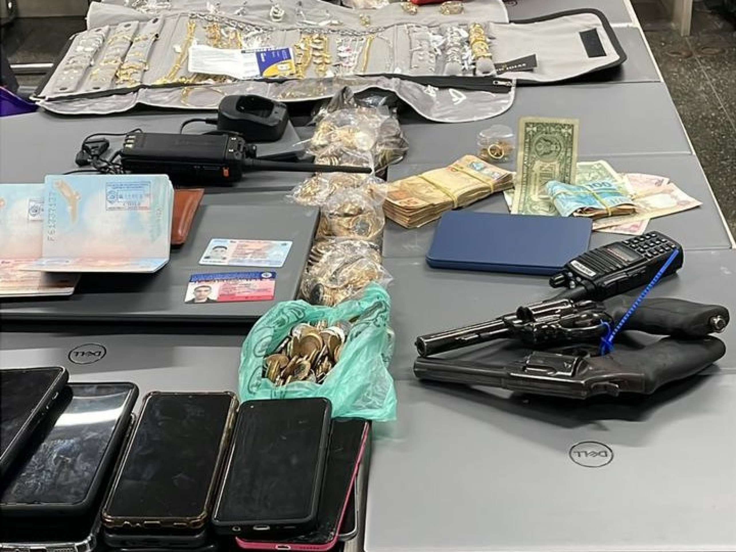 Durante a ação, foram apreendidos materiais utilizados nos crimes, como maçaricos e ferramentas empregadas no arrombamento de cofres e caixas eletrônicos, além de uma quantia significativa em dinheiro, duas armas de fogo e objetos furtados.
