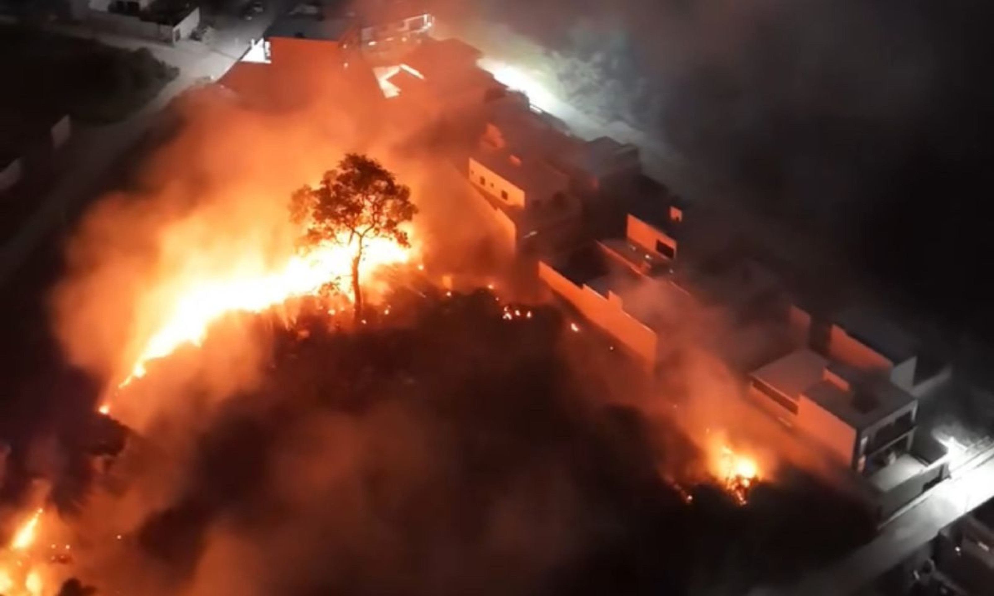 Um incêndio de grandes proporções atingiu a vegetação de um lote no bairro Tropical, em Contagem, na Região Metropolitana de Belo Horizonte, na noite dessa quinta-feira (27/2).