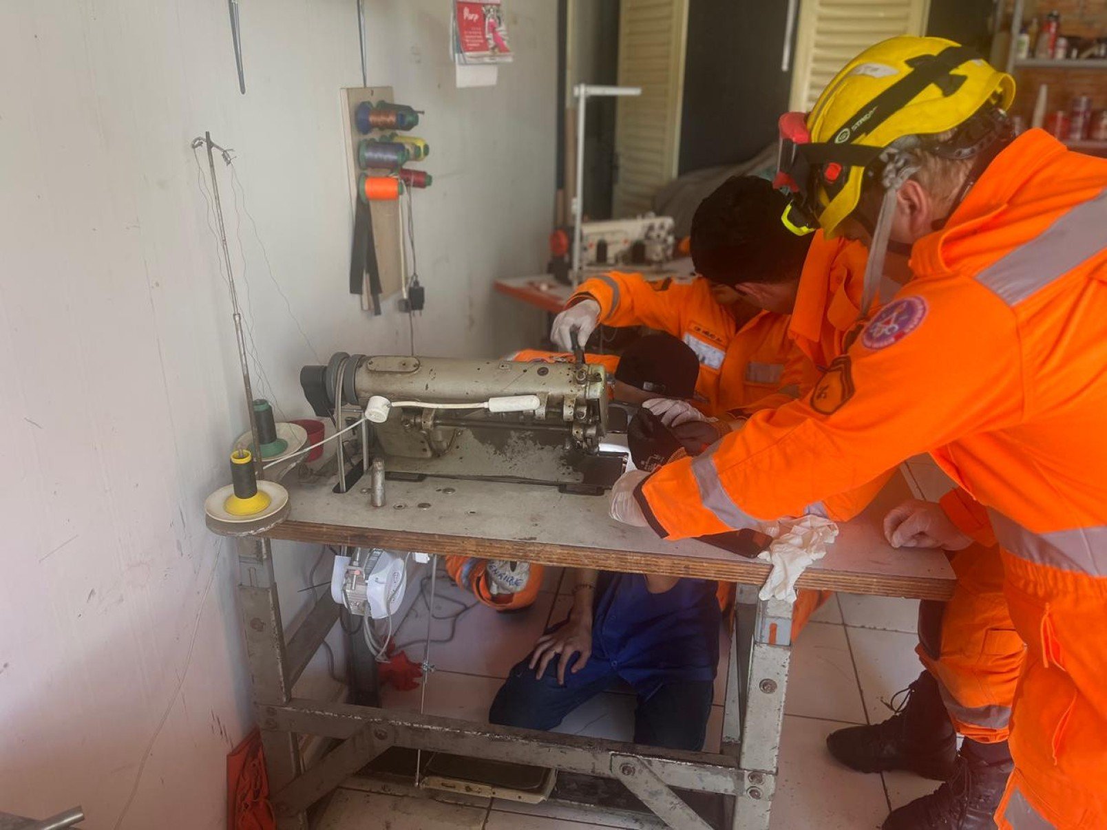 Bombeiros socorrem adolescente que ficou preso em máquina de costura em MG