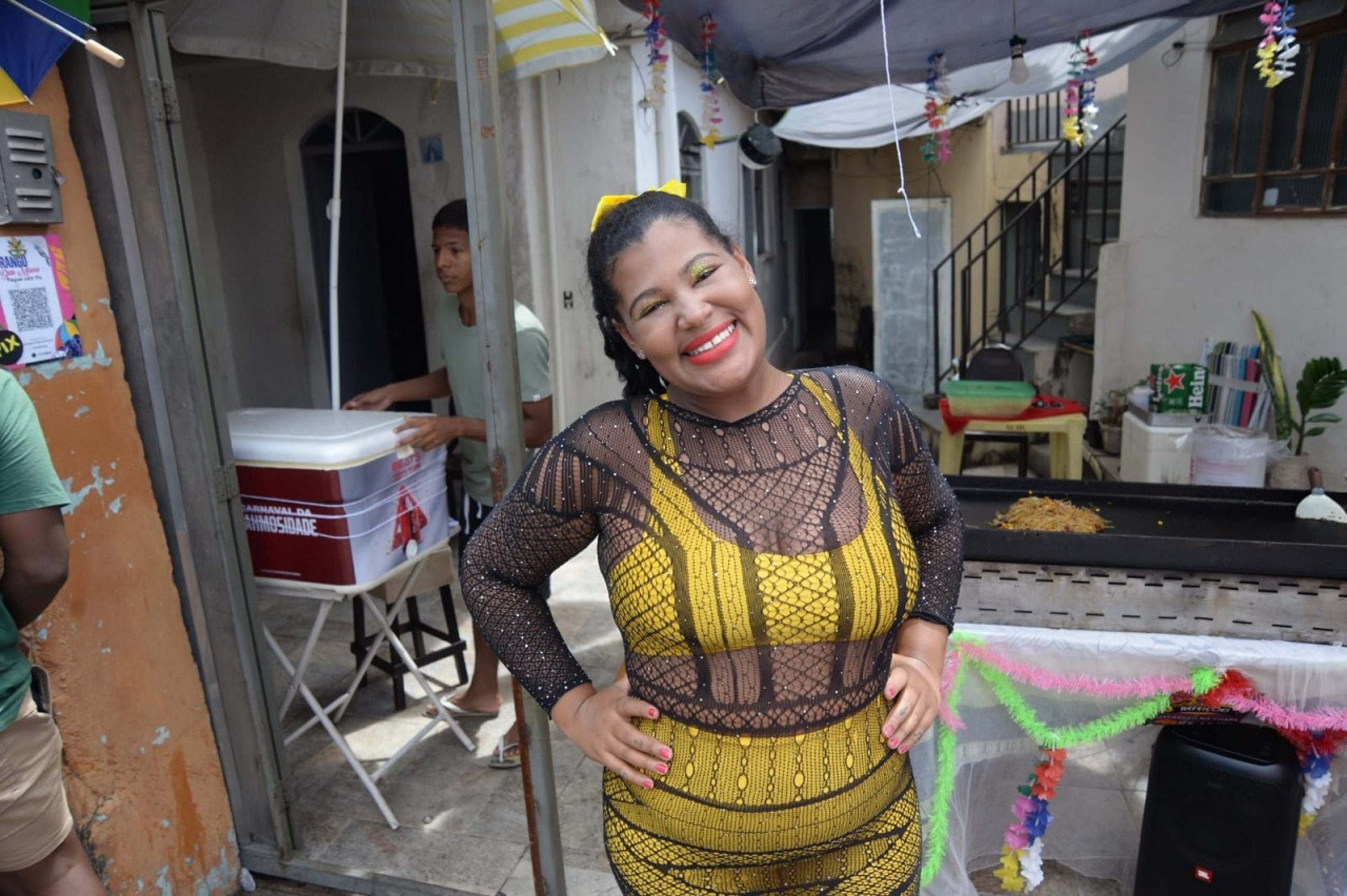 Quem a ajuda nas vendas são os irmãos e o sobrinho. A empreendedora explica que os dias de vendas por ali são bem leves, pois, mesmo trabalhando, o grupo não deixa de pular e cantar quando os blocos passam. "É uma coisa independente, de família, de fundo de quintal, literalmente. E traz aquela união familiar".