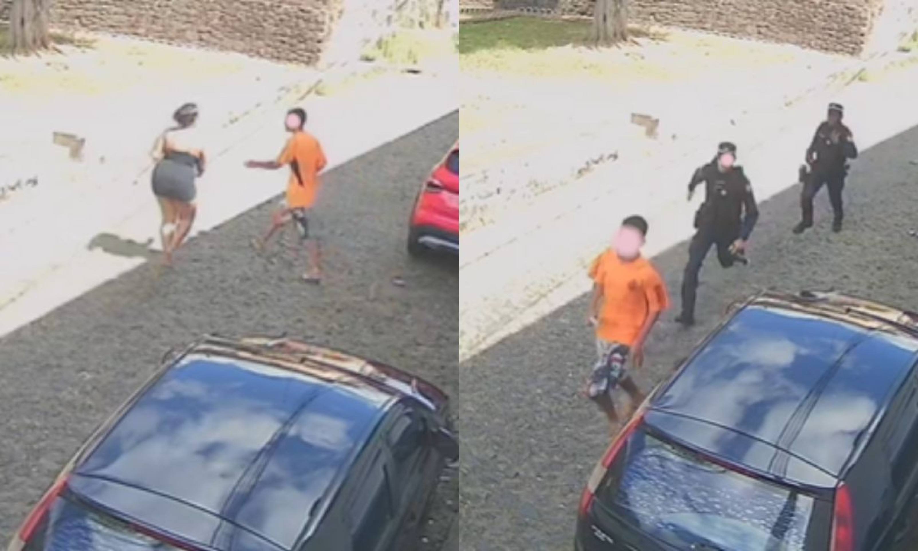 Imagens de câmeras de segurança mostram o momento em que a equipe iniciou a perseguição. O suspeito foi pego poucos minutos depois, na Praça Américo Lopes, sendo necessário o uso de força e algemas.