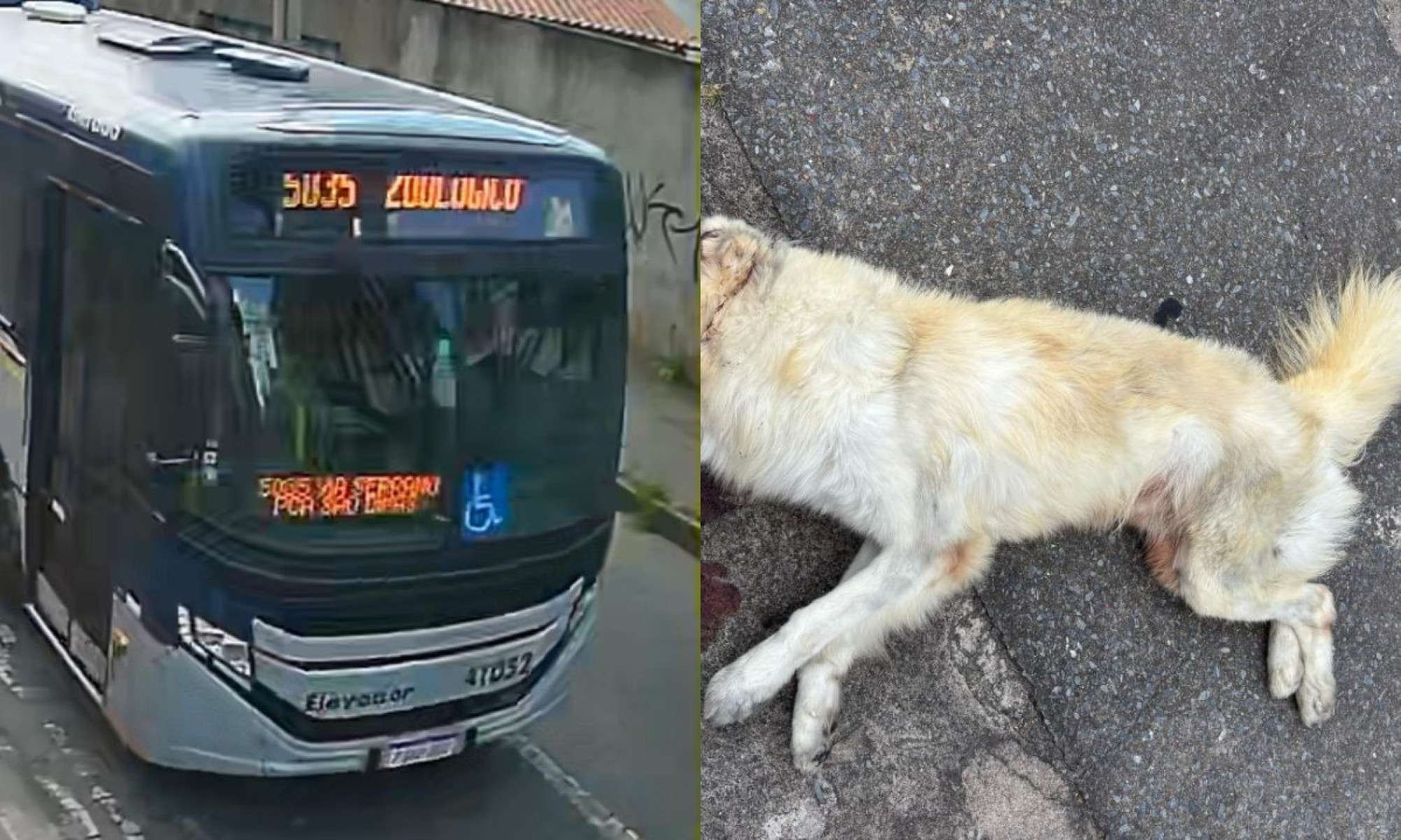Um cachorro foi morto ao ser atropelado por um ônibus na rua Olinto Magalhães, no bairro Padre Eustáquio, Região Noroeste de Belo Horizonte, na tarde deste domingo (9/3). O motorista do coletivo da linha 5035 (Zoológico / Hospitais Via Serrano) não prestou socorro e funcionários da Clínica Fofos Pet, localizada na mesma rua, foram até o local e constataram a morte.