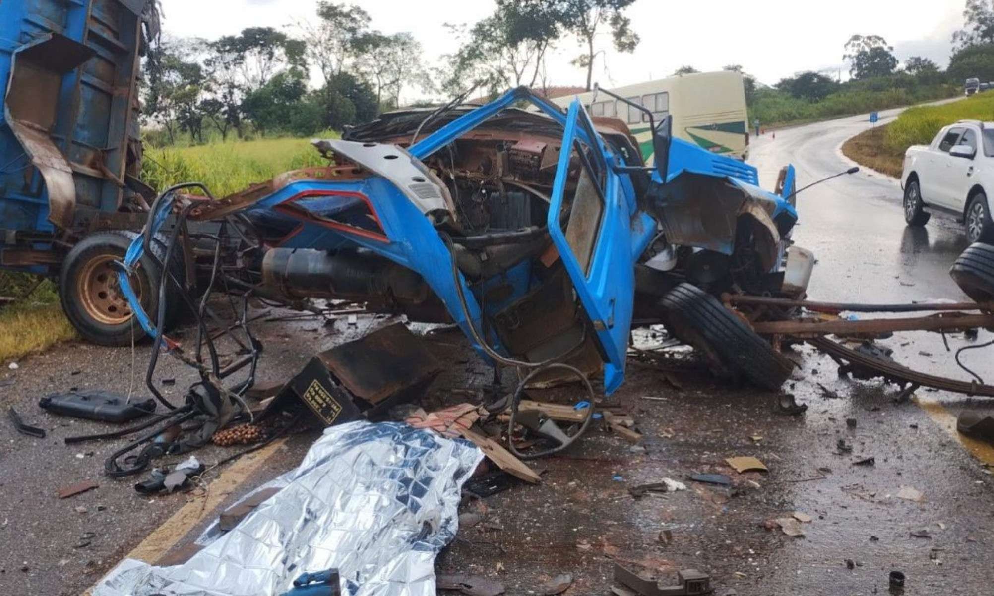 Segundo o Corpo de Bombeiros Militar de Minas Gerais (CBMMG), o corpo do caminhoneiro foi encontrado próximo ao veículo. No interior, estava o passageiro do caminhão, que apresentava um corte profundo na cabeça e dores nos membros superiores.