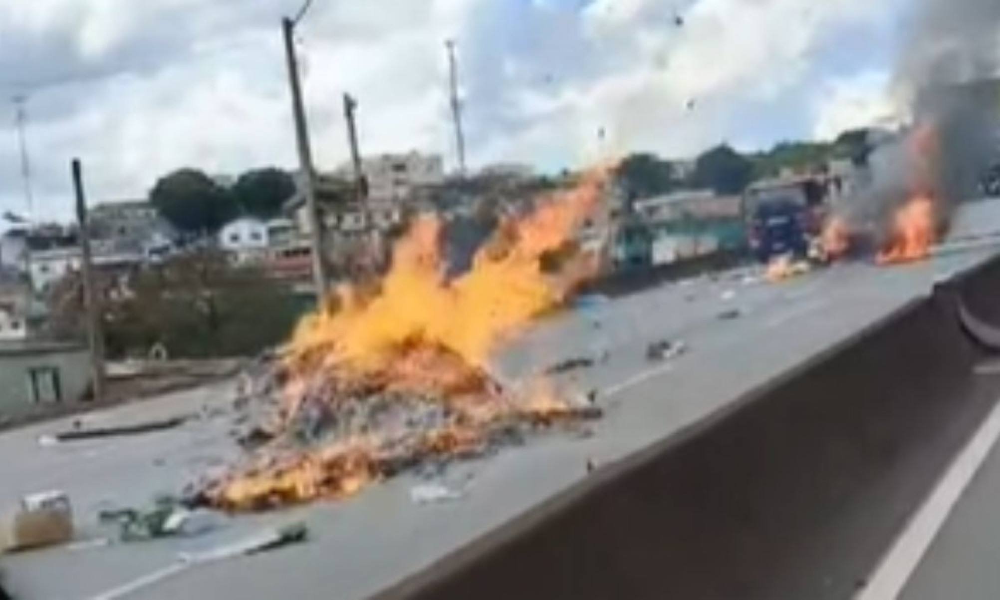 Além das ameaças, foram registradas barricadas em chamas, que impediam a passagem de veículos. Conforme a polícia, um caminhão que não conseguiu passar teve a carga saqueada.