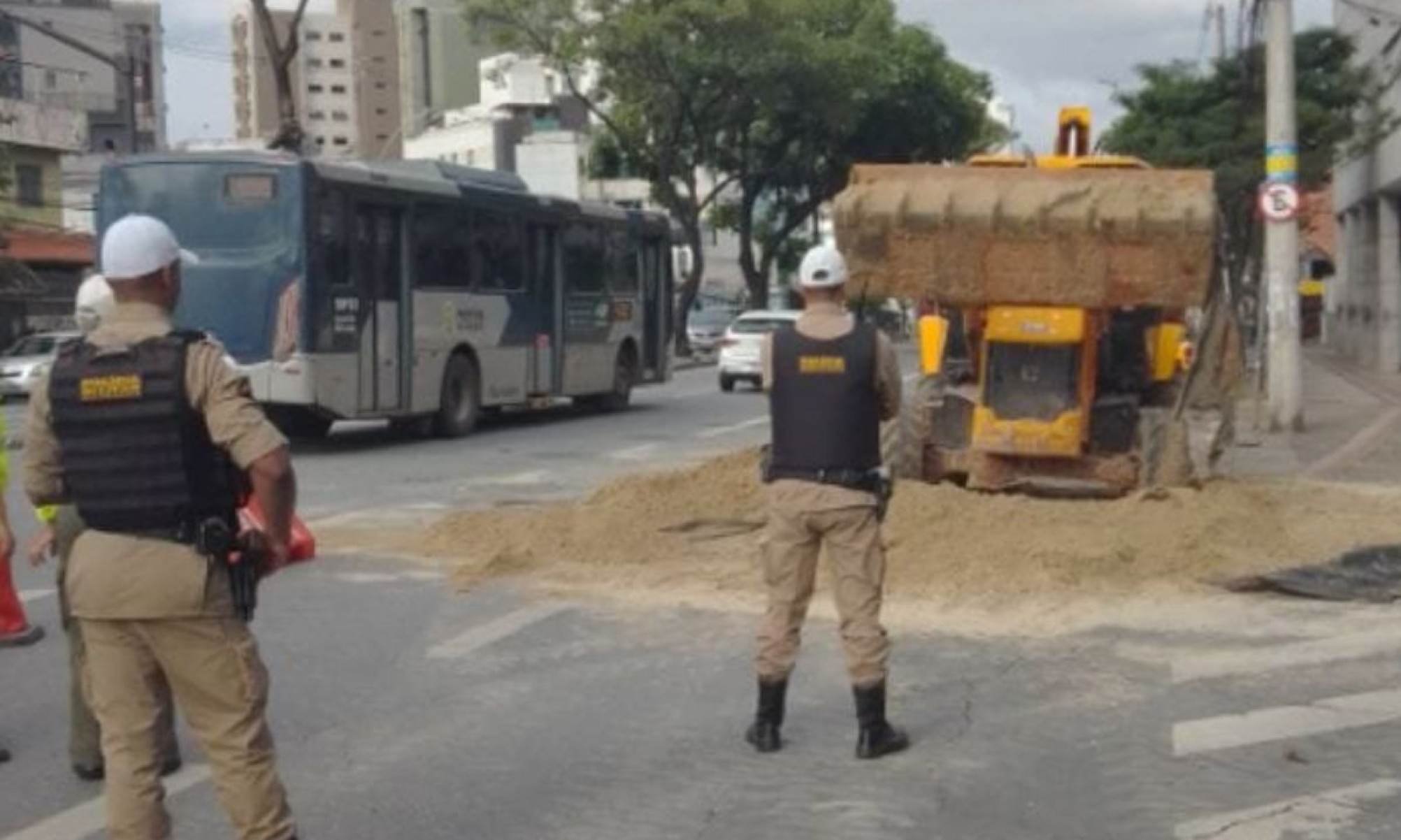 Um acidente envolvendo um caminhão de areia bloqueia a Avenida Amazonas na altura do bairro Barro Preto, na Região Centro-Sul de Belo Horizonte, na manhã desta segunda-feira (24/3).