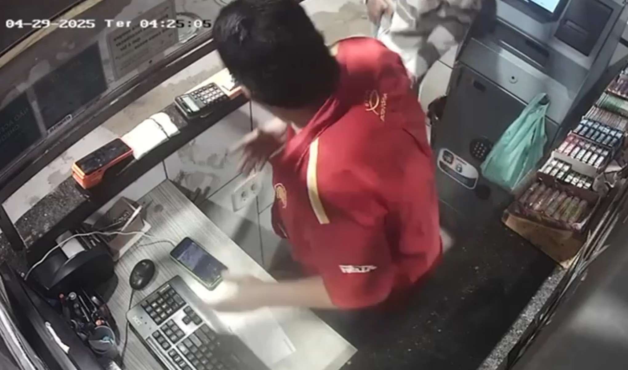 O assaltante pegou R$ 45 e o aparelho celular do atendente. Antes de fugir, mandou a vítima abaixar a cabeça. Câmeras de segurança flagraram a ação criminosa. Dois homens chegaram em uma moto, que parou em uma esquina. O carona é quem ficou responsável pela abordagem e pelo roubo, flagrado em vídeo. Até o fechamento desta publicação, ninguém havia sido preso.
