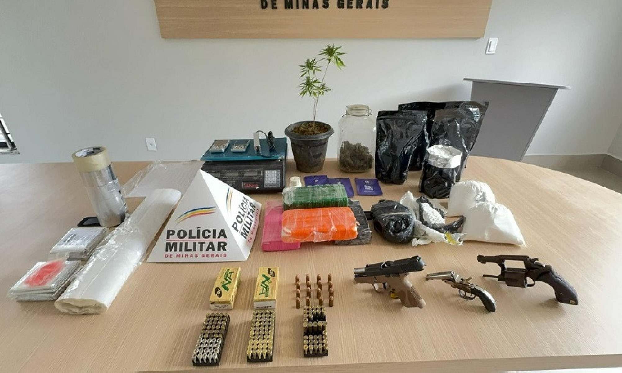 No local foram apreendidos cinco barras de cocaína, sete sacolas de cocaína refinada, uma barra de cocaína fracionada, um vidro de maconha, quatro recipientes com sementes de maconha, três balanças de precisão e um rolo de papel filme para dolagem.