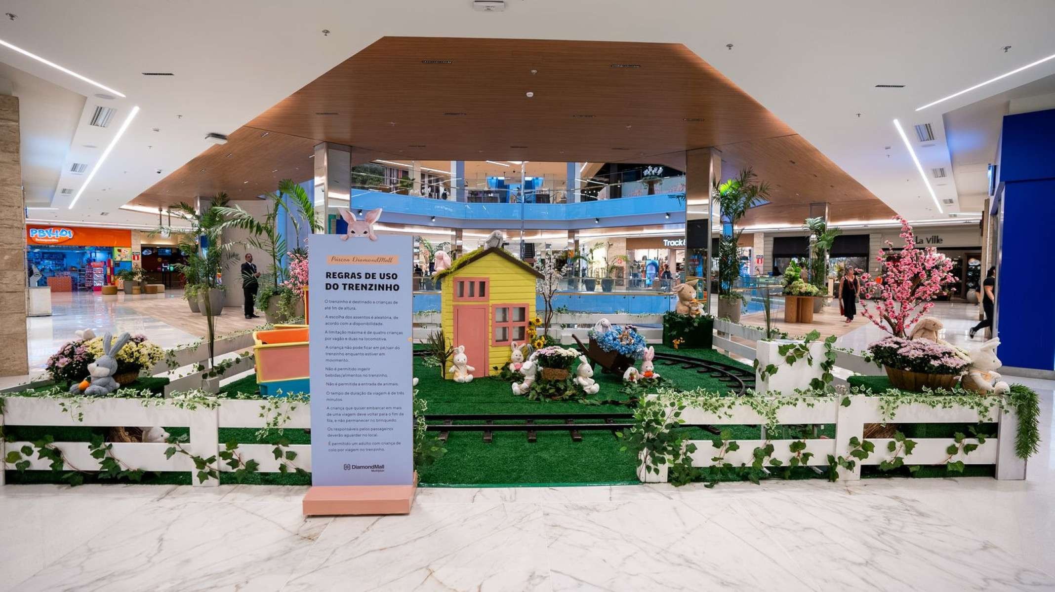 A Vila de Páscoa do DiamondMall reúne brinquedos como escorregador, tobogã, brinquedo giratório e trenzinho, gratuitos para crianças de até um metro de altura, até 21 de abril.