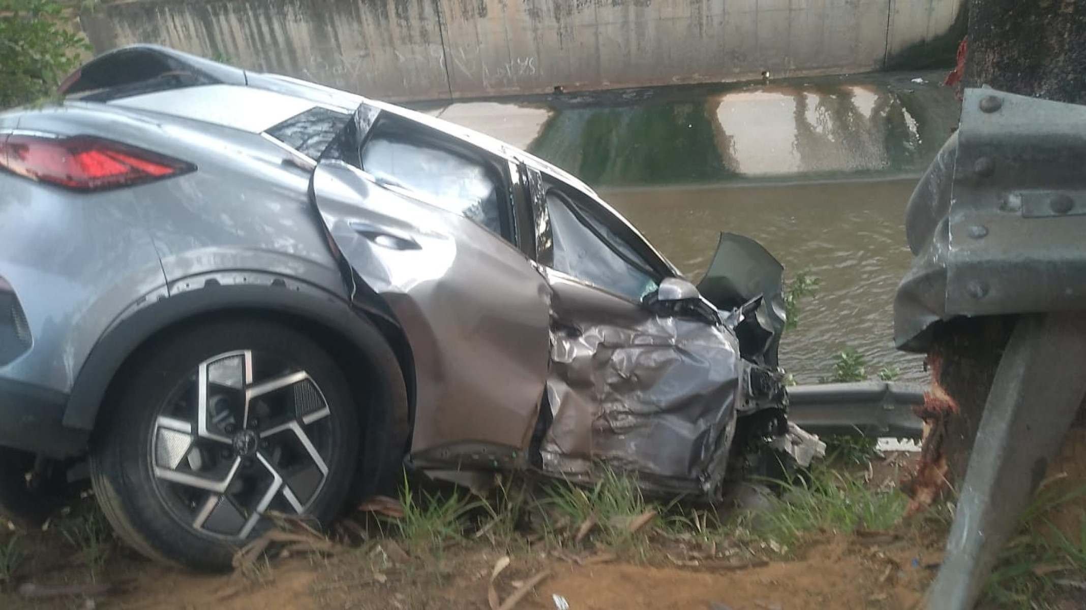 Segundo informações dos militares, o motorista perdeu a direção do veículo, bateu em um obstáculo na pista e ficou pendurado na ribanceira do Rio Arrudas.