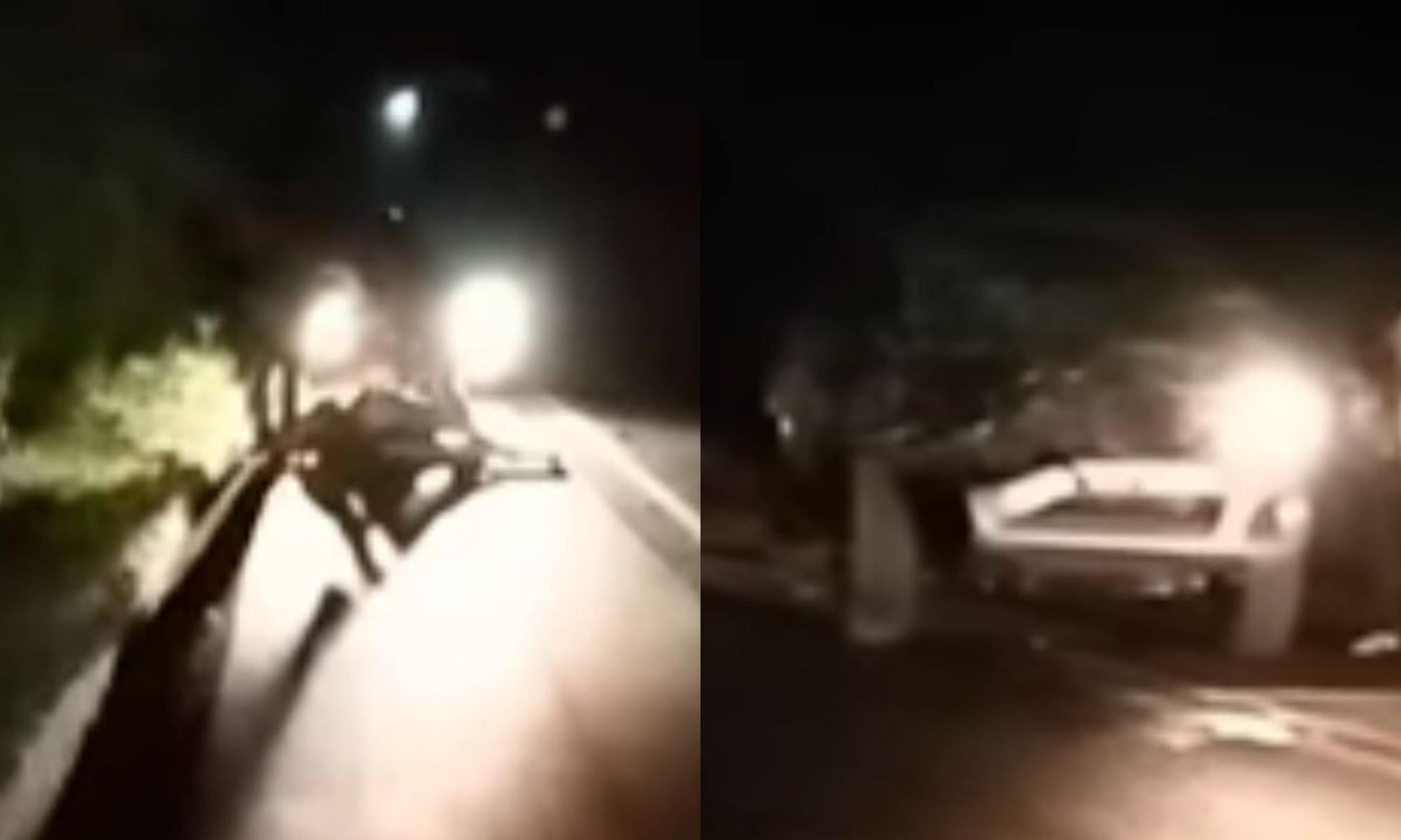 Em certo momento, segundo ele, um dos animais pulou na frente do veículo e ele não conseguiu evitar o atropelamento. Imagens do momento do acidente mostram que a parte dianteira do veículo ficou danificada com o impacto.