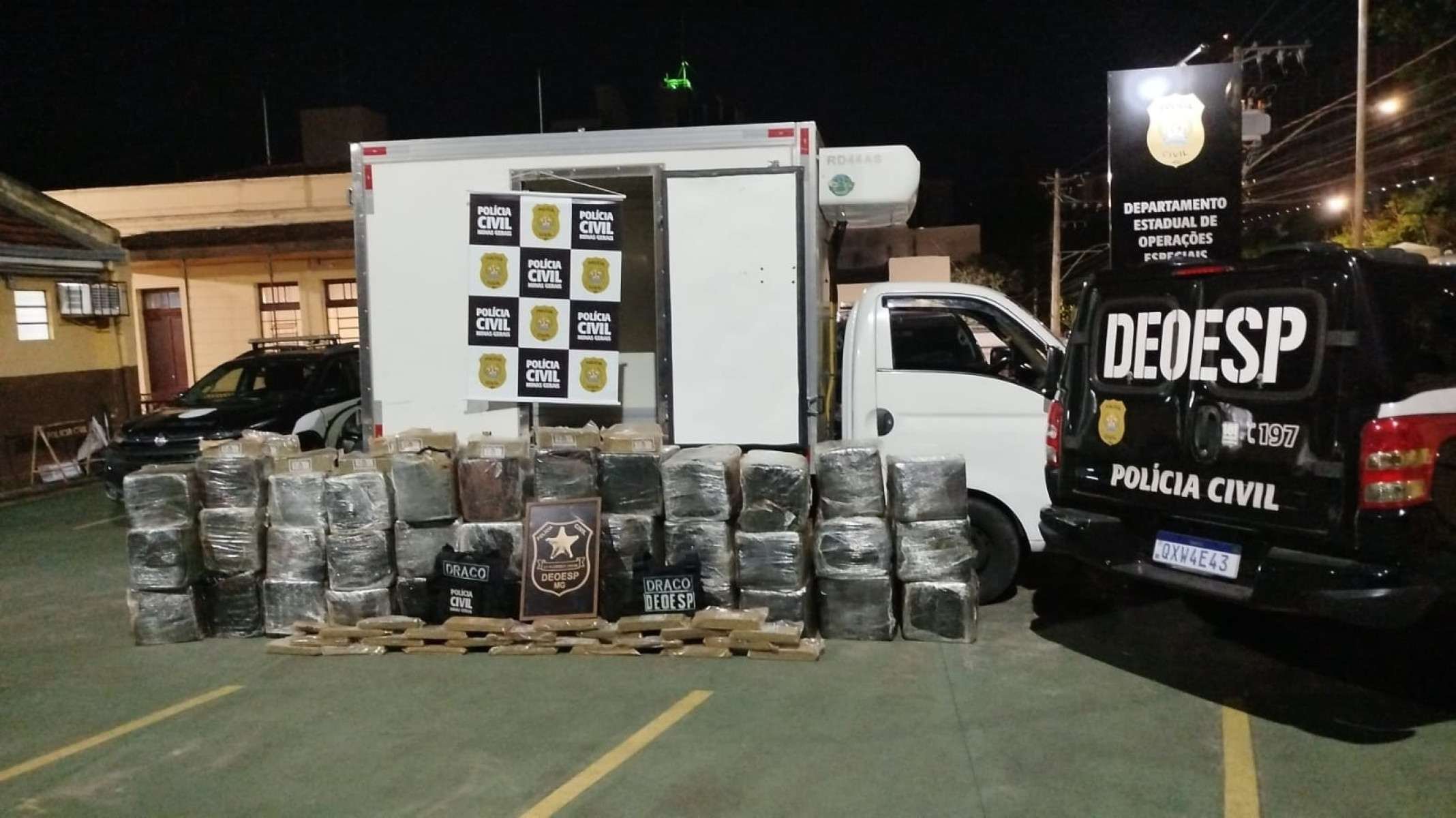Mais de 800 quilos de maconha, que seriam refinados e distribuídos em Belo Horizonte, foram apreendidos durante uma operação na madrugada de domingo (13/4). A droga foi interceptada por agentes do Departamento Estadual de Operações Especiais (Deoesp) da Polícia Civil de Minas Gerais (PCMG), em Itaguara, na Região Metropolitana da capital. O entorpecente estaria ligado a um grupo associado a uma facção do Rio de Janeiro.