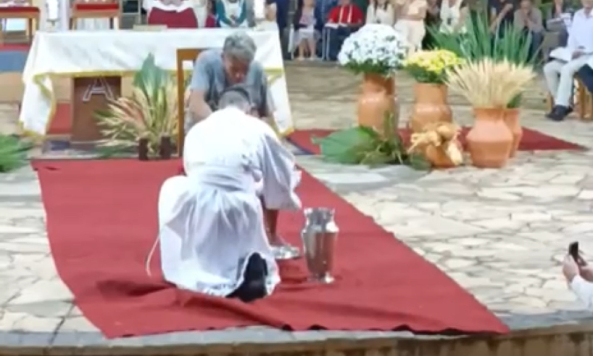 A cerimônia, que relembra a Ceia do Senhor e o mandamento do amor deixado por Jesus, contou inicialmente com doze pessoas previamente escolhidas para representar os apóstolos. No entanto, um morador de rua conhecido na cidade como Índio surpreendeu ao se aproximar, demonstrando o desejo de também ter os pés lavados. Sem hesitar, o padre acolheu o pedido.