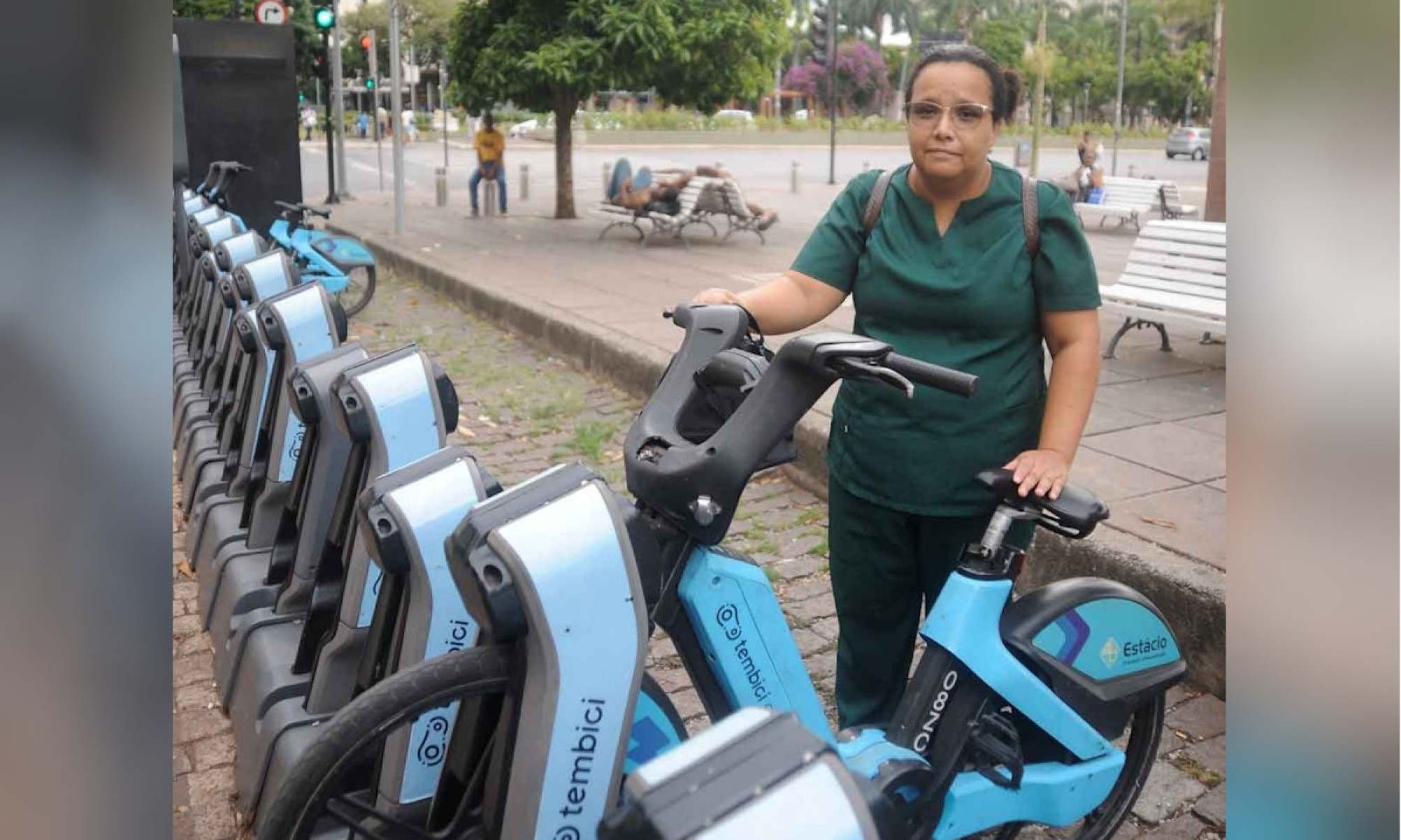As bikes elétricas fazem parte da rotina de Cristina no deslocamento entre a Estação Central do metrô, no Centro, e o hospital onde trabalha, na Alameda Ezequiel Dias – distantes cerca de um quilômetro. Os minutos economizados sobre duas rodas fazem a diferença no trajeto exaustivo enfrentado pela técnica de enfermagem todos os dias, completado com metrô até Contagem e ônibus até Betim, onde mora. “Às vezes o metrô chega atrasado no Centro e, com a bicicleta, em cinco minutos eu estou no serviço. Sem ela, são uns 12 minutos de caminhada”, detalha.
