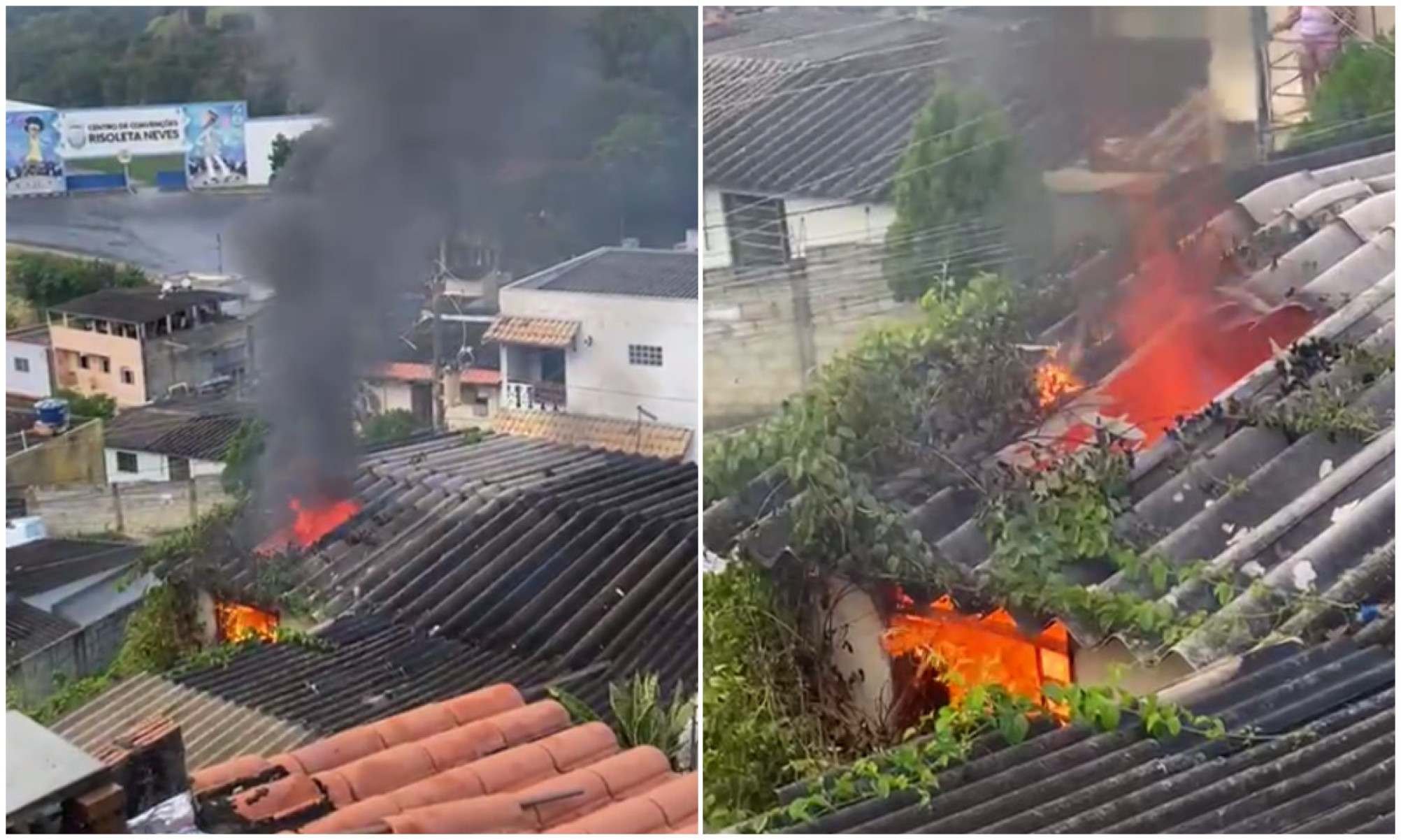 Vídeos divulgados nas redes sociais mostram as chamas altas saindo de uma das janelas do imóvel. Com o calor, parte do telhado cedeu e uma grande quantidade de fumaça preta foi vista de longe.