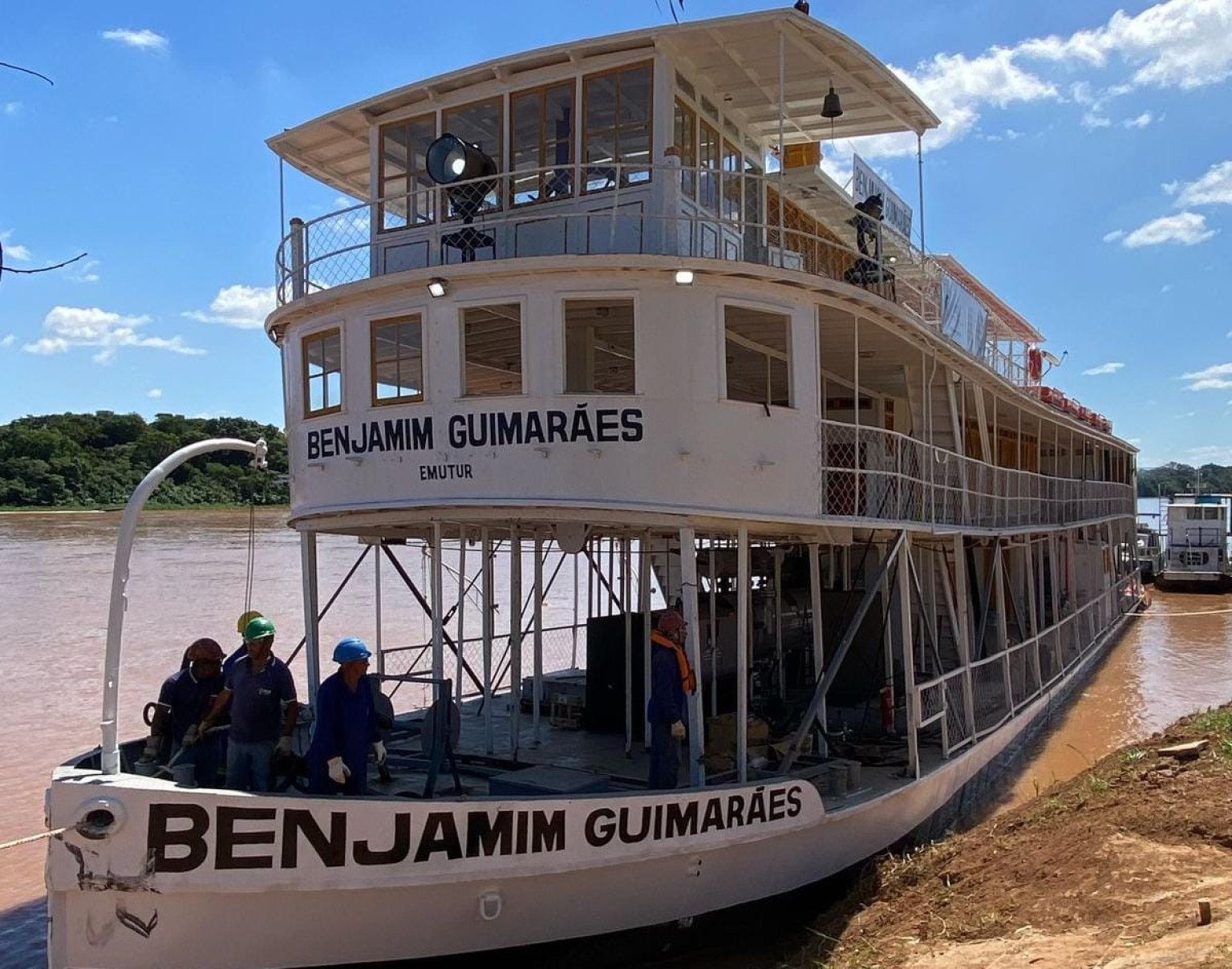 O Benjamim Guimarães, única embarcação movida a vapor a lenha ainda existente no mundo, foi retirado da água há cinco anos, ficando “estacionado” em terra em um ponto próximo do porto de Pirapora, para a reforma da estrutura. Os serviços estão a cargo da empresa Indústria Naval Catarinense (INC) e foram viabilizados, em setembro de 2024, pelo Ministério de Minas e Energia e pela Eletrobrás, com verba federal, no valor de R$ 5,8 milhões, do Programa de Revitalização dos Recursos Hídricos das Bacias Hidrográficas do Rio São Francisco e do Rio Parnaíba.