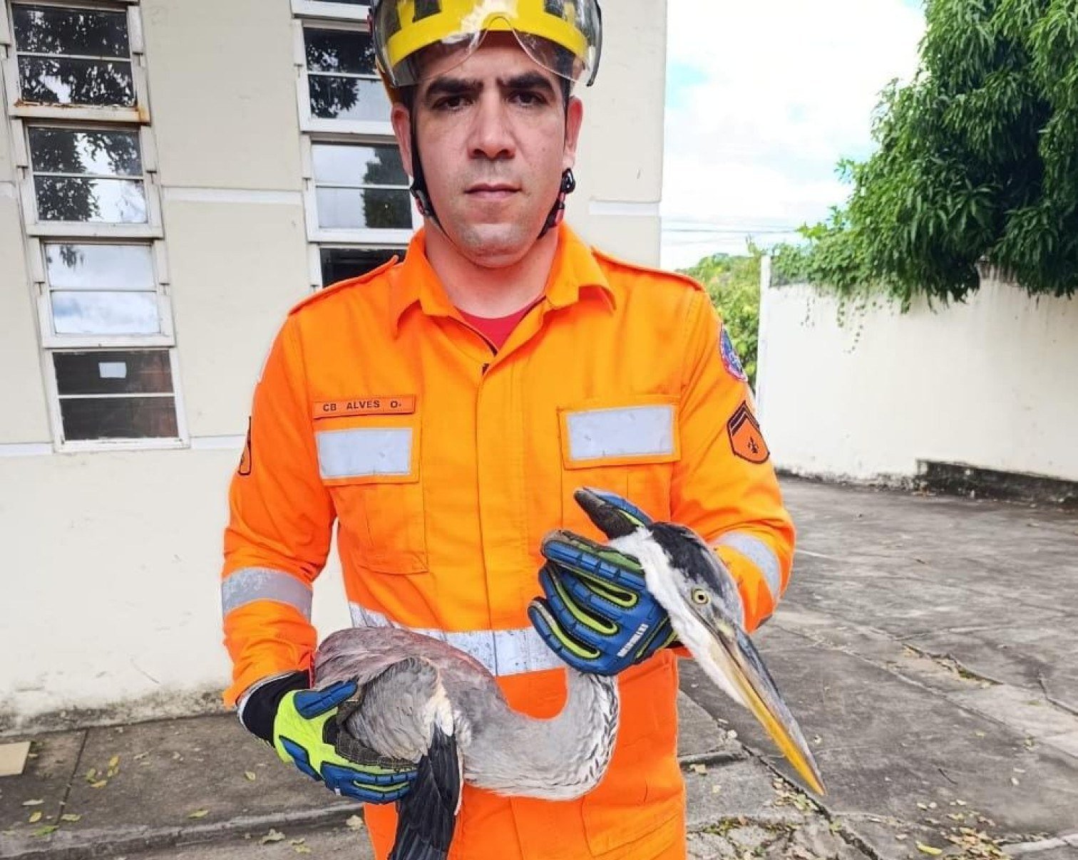 De acordo com o Corpo de Bombeiros, os moradores relataram que viram a garça caída debaixo de um poste de iluminação pública, possivelmente, após ter batido na rede elétrica e sofrido um choque.