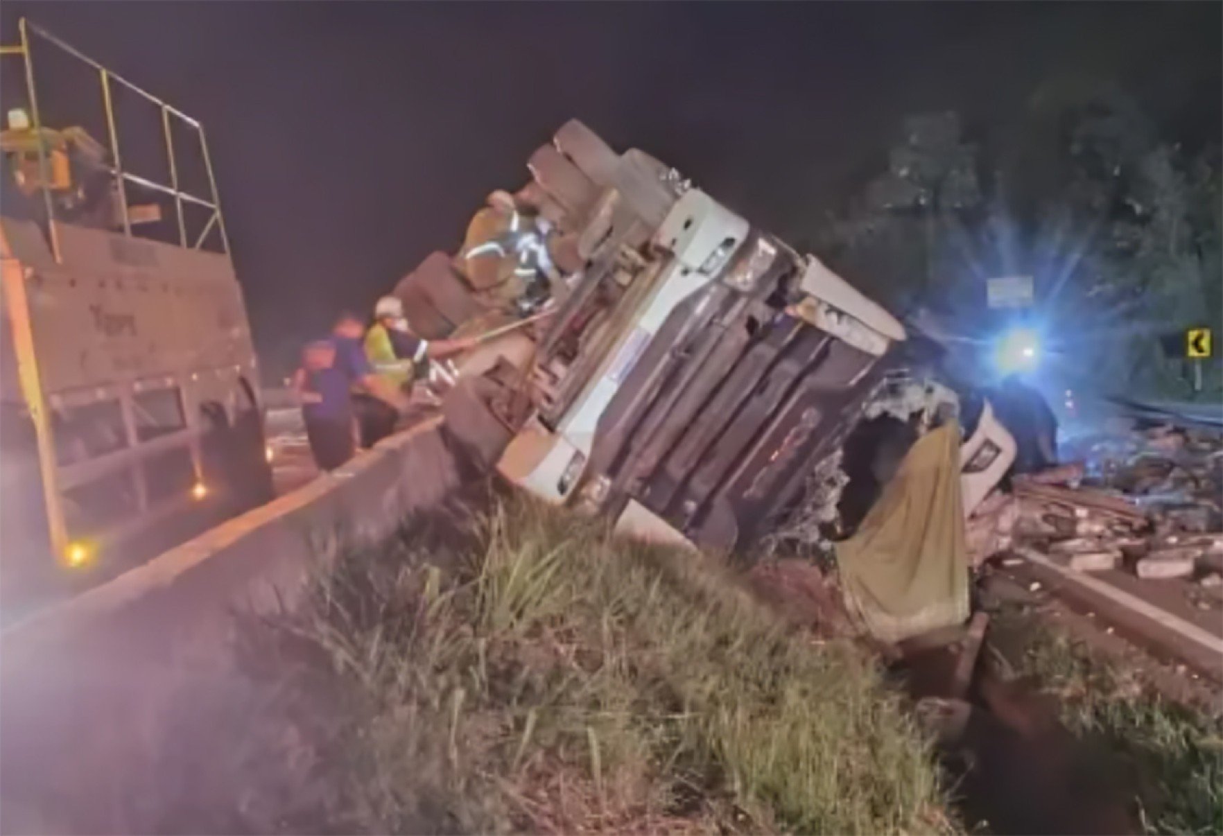 O motorista da carreta ficou ferido e foi socorrido por uma ambulância da concessionária.