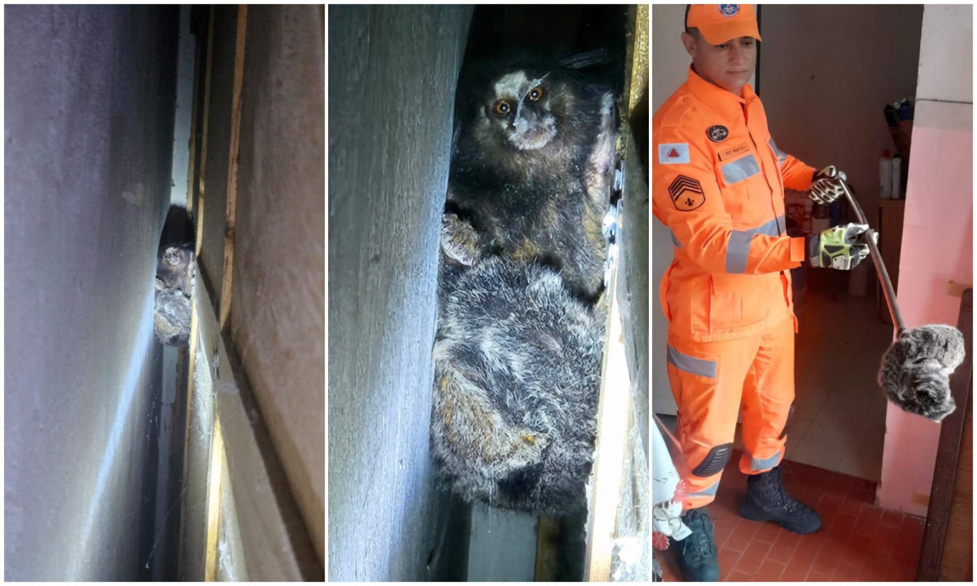 Os bombeiros afastaram o guarda-roupa com cuidado para conseguir ter acesso ao primata. O sagui foi capturado em segurança e passou por avaliação médica.