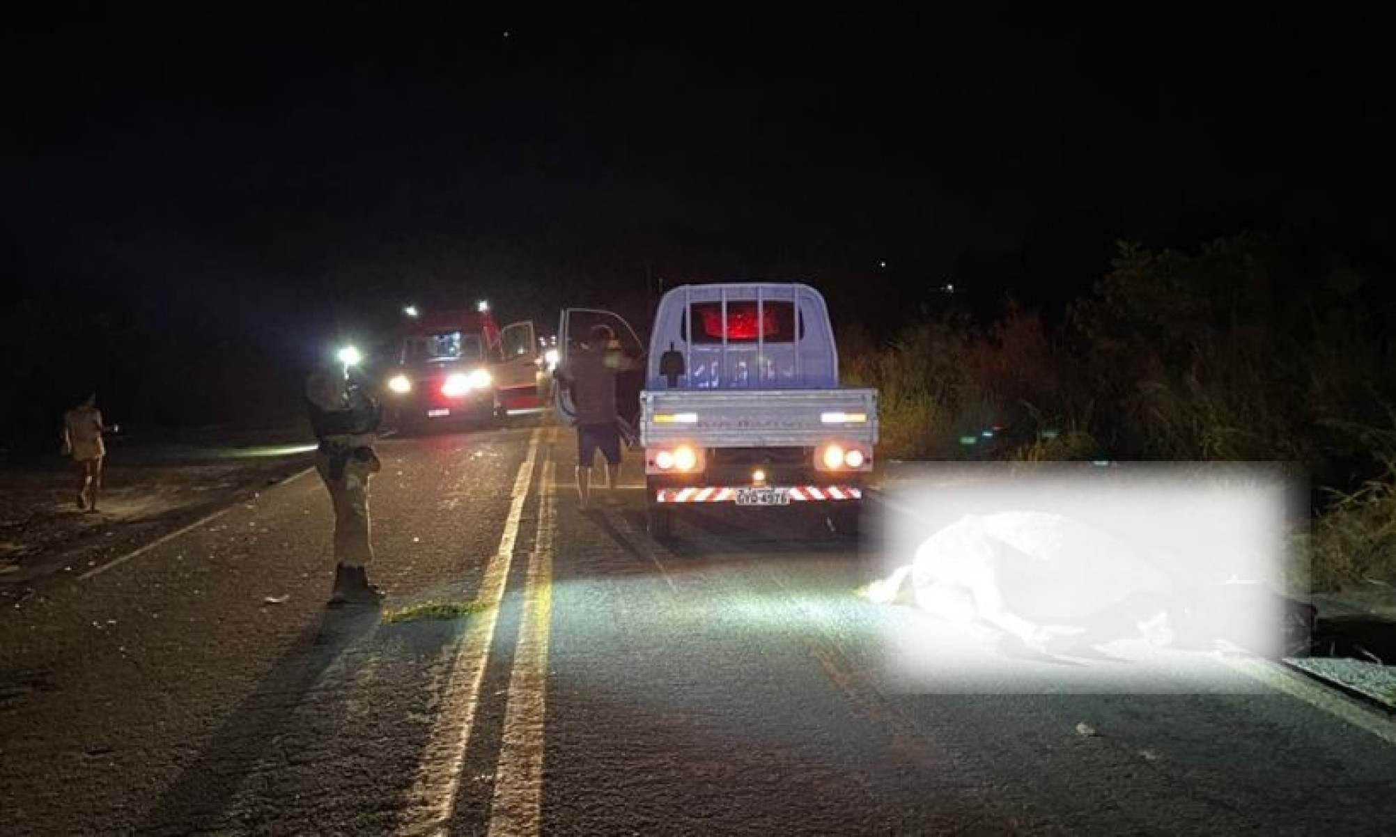 Três motociclistas seguiam no mesmo sentido da rodovia quando atropelaram uma água que atravessava a pista.