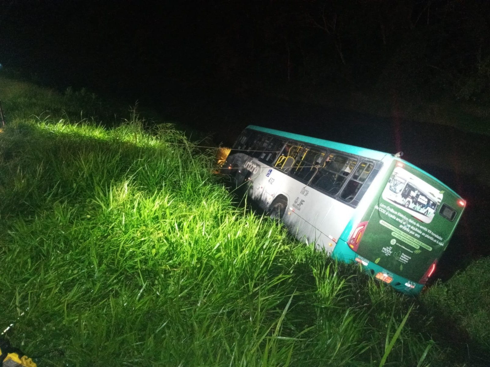 Um ônibus do transporte coletivo urbano caiu às margens do Rio Paraibuna, em Juiz de Fora, na Zona da Mata mineira. O acidente aconteceu na noite dessa quarta-feira (14/5), em frente ao Supermercado Atacadão, na Zona Norte da cidade. Duas mulheres ficaram feridas.