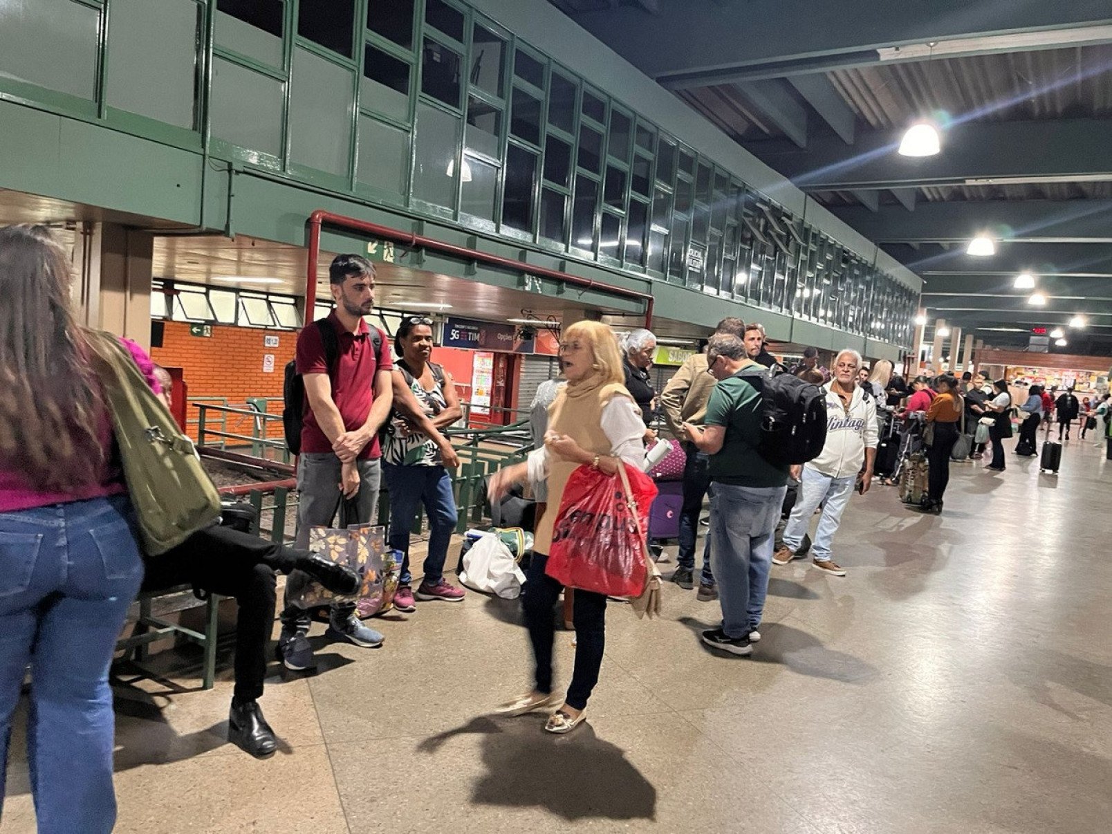 O ônibus das 18h30 acabou partindo somente por volta das 20h12. No momento do embarque, houve confusão porque algumas pessoas sem passagem tentaram entrar na frente de outras que já estavam com o tíquete.
