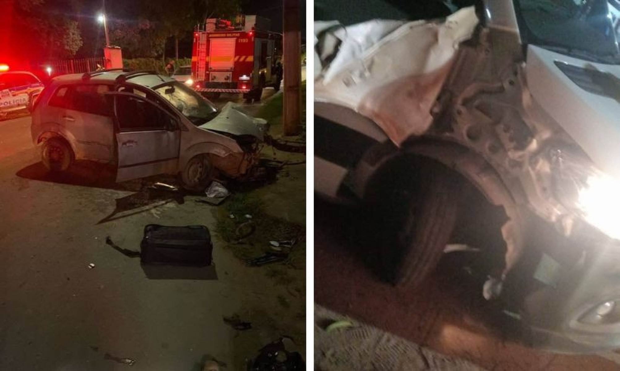 Dentro do carro, um Ford Fiesta, dois homens, de 52 e 62 anos, tiveram ferimentos leves e foram encaminhados para o hospital regional da cidade.