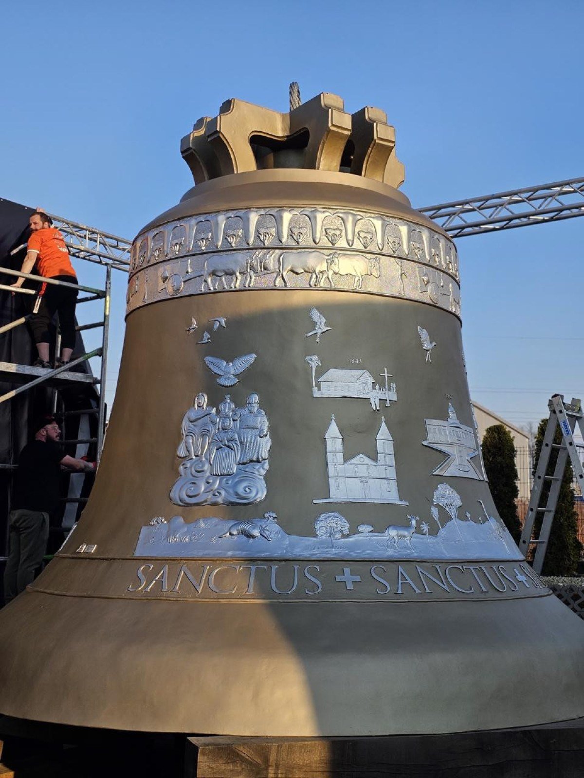 Além do “Vox Patris”, mais dois sinos menores, que também irão compor o campanário do novo santuário de Trindade, estão a caminho. “Foi um momento muito especial. Viemos agradecer aos poloneses que, durante dez anos, se dedicaram à construção desses sinos. É um símbolo da nossa fé e da união de esforços para algo grandioso”, declarou o prefeito Marden. A peça atravessou o Oceano Atlântico em navio fretado, com desembarque no porto de Santos (SP), seguindo em uma carreta especial de seis eixos até o destino final.