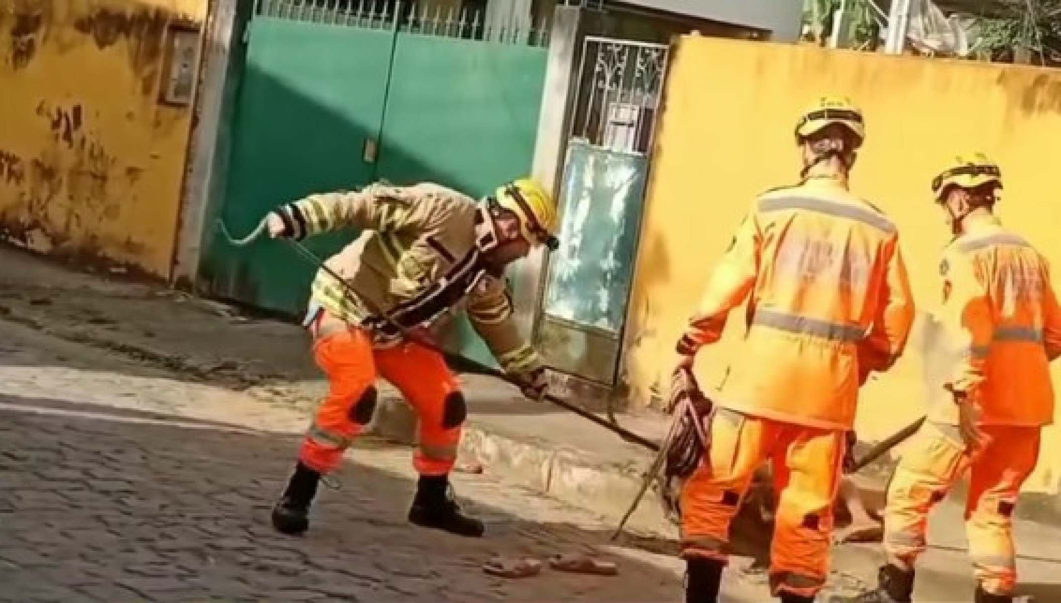O Corpo de Bombeiros recebeu o chamado para resgate às 8h45. Conforme a corporação, a idosa segurou as patas do animal a fim de tentar imobilizá-lo até a chegada do socorro. No local, os militares conseguiram conter o cachorro.