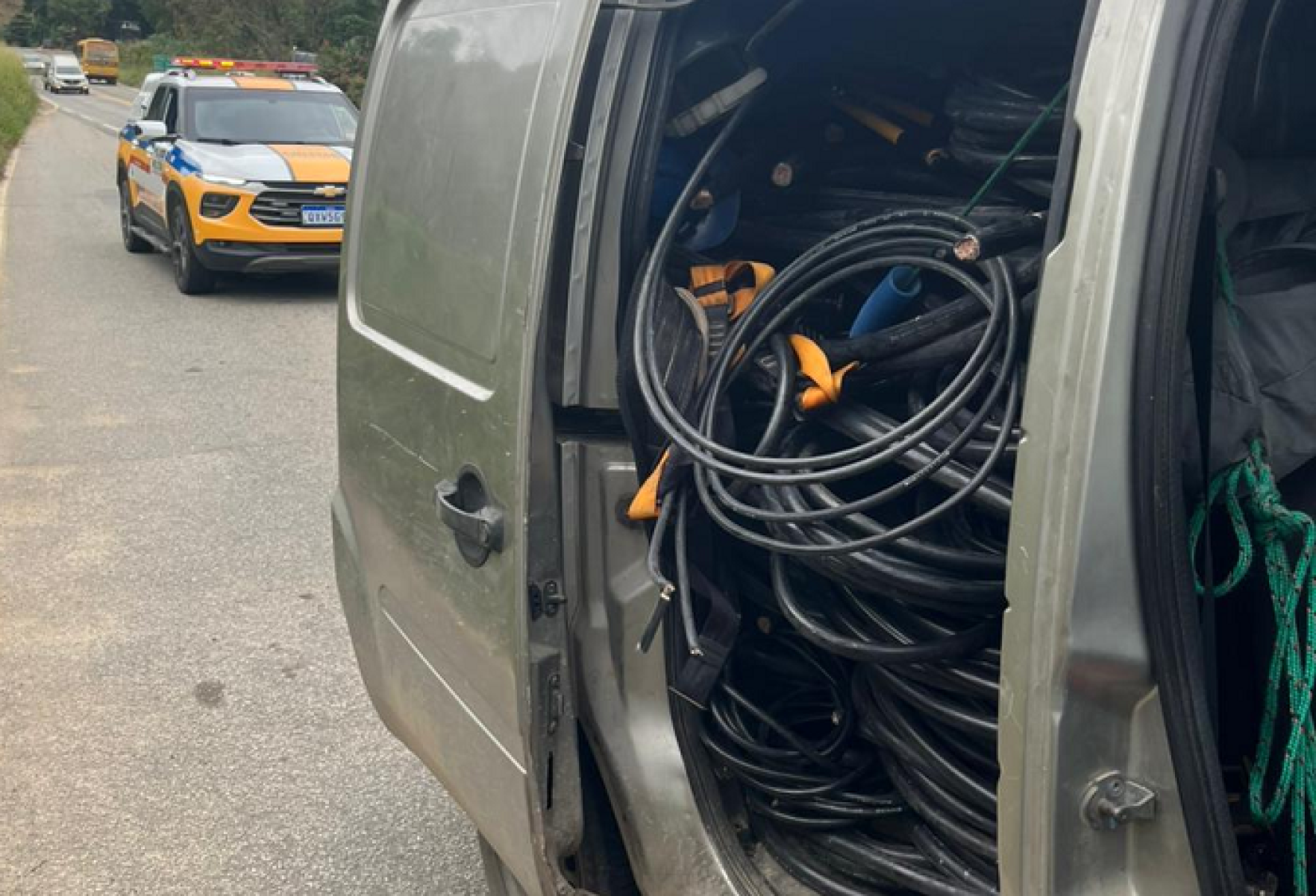 A Polícia Militar Rodoviária de Minas Gerais (PMRv) apreendeu cerca de 400 quilos de cabos de fios de cobre usados em serviços de uma rede de telefonia, no início da tarde desta sexta-feira (30/5).