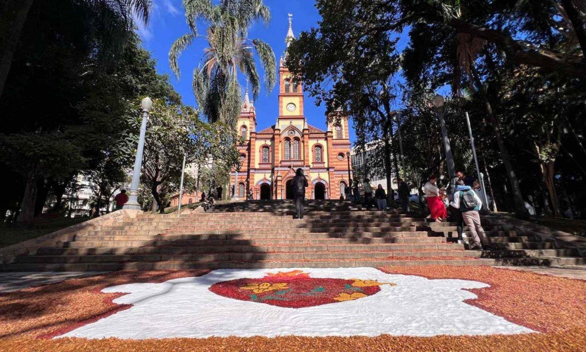 Siga noEm uma manifestação de fé e tradição, ruas de cidades mineiras estão cobertas de cores na manhã desta quinta-feira (19/6). Os tapetes devocionais tomam conta de diversos espaços para as procissões e celebrações da Festa de Corpus Christi. Na escadaria do Santuário Arquidiocesano São José, no Centro de Belo Horizonte, fiéis se reuniram em meio à ornamentação com serragem, e as missas já são realizadas desde às 7h.