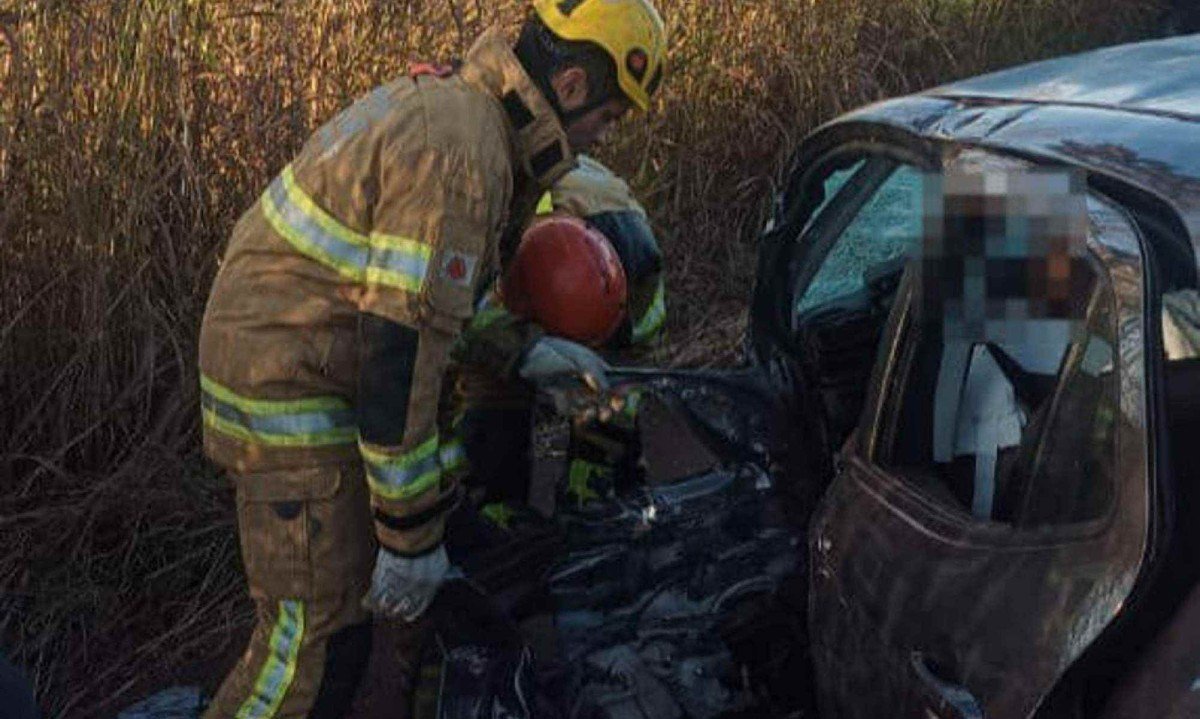 Batida entre carro e caminhão deixa motorista preso às ferragens na BR-154
