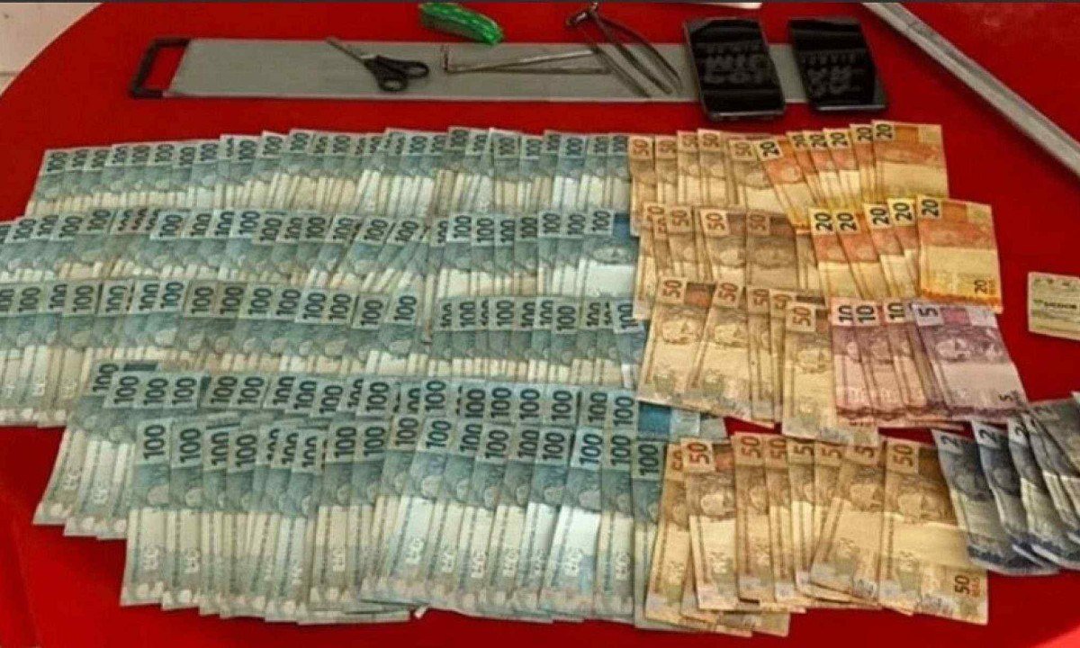 Com o suspeito, detido em flagrante, foram encontrados envelopes bancários com dinheiro e cheque, além de ferramentas utilizadas em furtos de caixas eletrônicos.