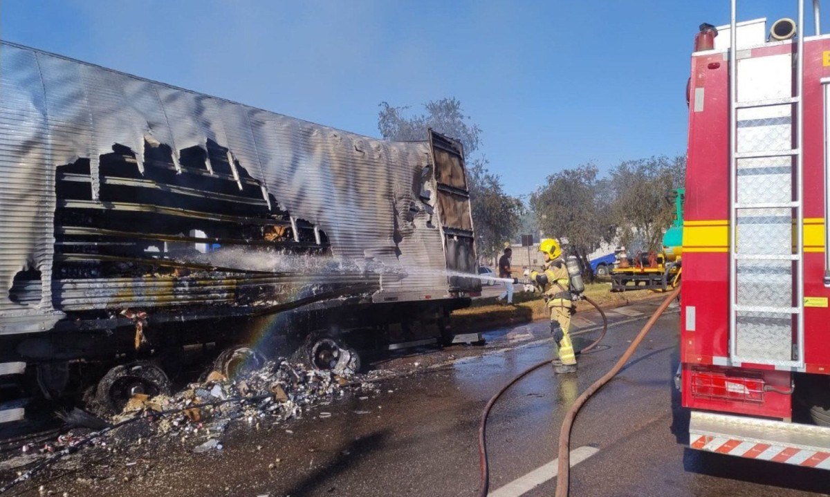 Equipes do Corpo de Bombeiros e da Polícia Rodoviária Federal (PRF) foram acionadas por volta das 3h35. De acordo com os bombeiros, o incêndio se alastrou para a vegetação marginal da via. As chamas estavam concentradas no baú do caminhão. Não houve vítimas.