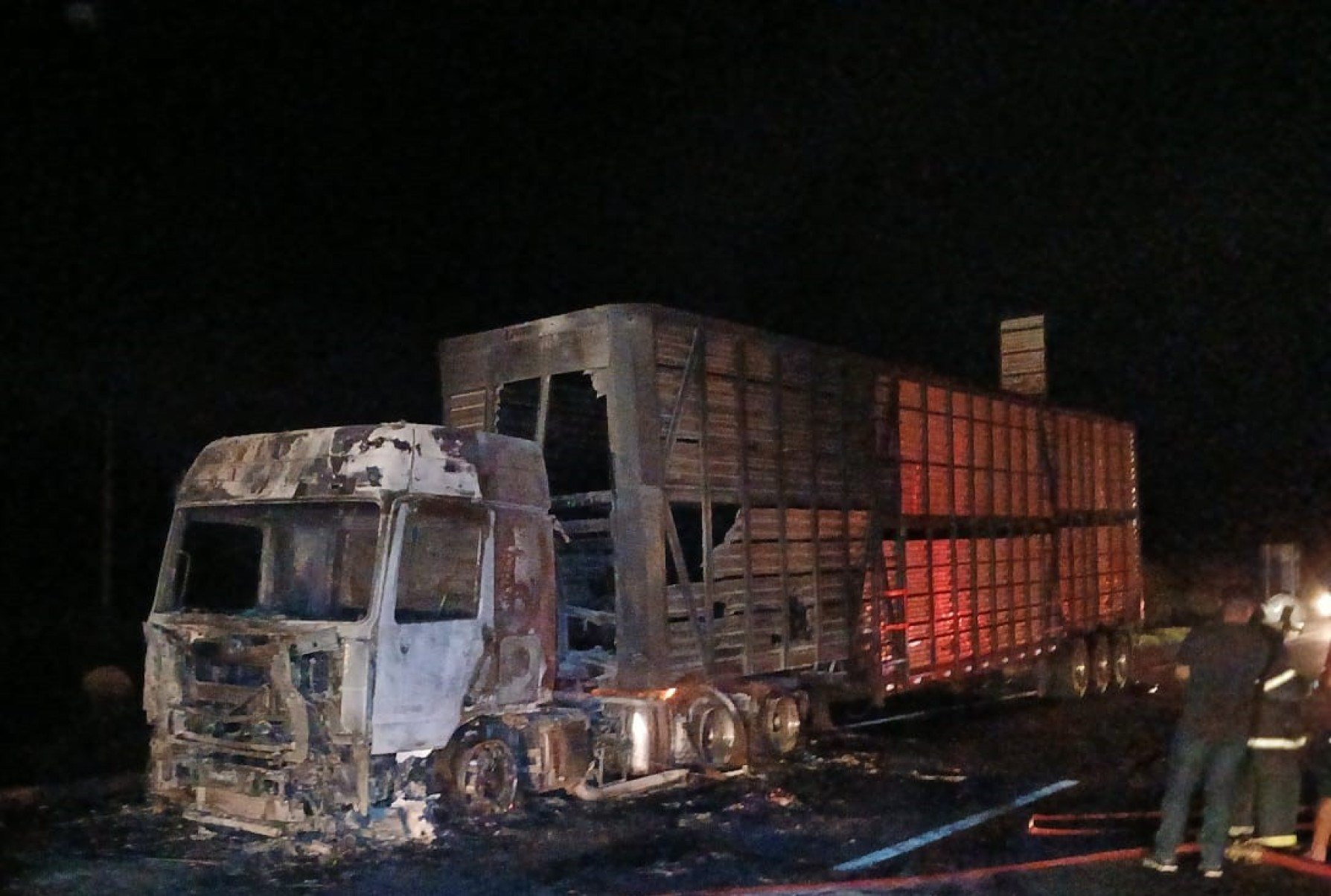 Uma carreta com carga de bovinos da raça nelore pegou fogo na noite deste domingo (1º/6) na BR-040, na altura do distrito de Correia de Almeida, em Barbacena (MG), na região do Campo das Vertentes. O Corpo de Bombeiros da cidade informou que, segundo o motorista, seis animais morreram queimados. O incêndio aconteceu por volta das 20h.