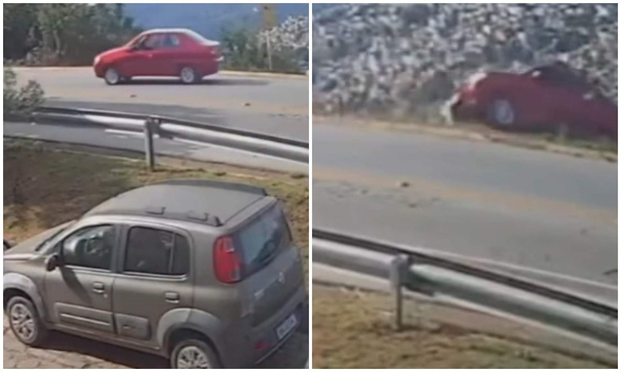 Imagens registradas por uma câmera de monitoramento mostram o momento no qual um carro desgovernado desce a MG-030, perto do Bairro Chácara Bom Retiro, em Nova Lima, na Região Metropolitana de Belo Horizonte. O incidente aconteceu na tarde desta segunda-feira (2/6). As informações são da TV Alterosa.