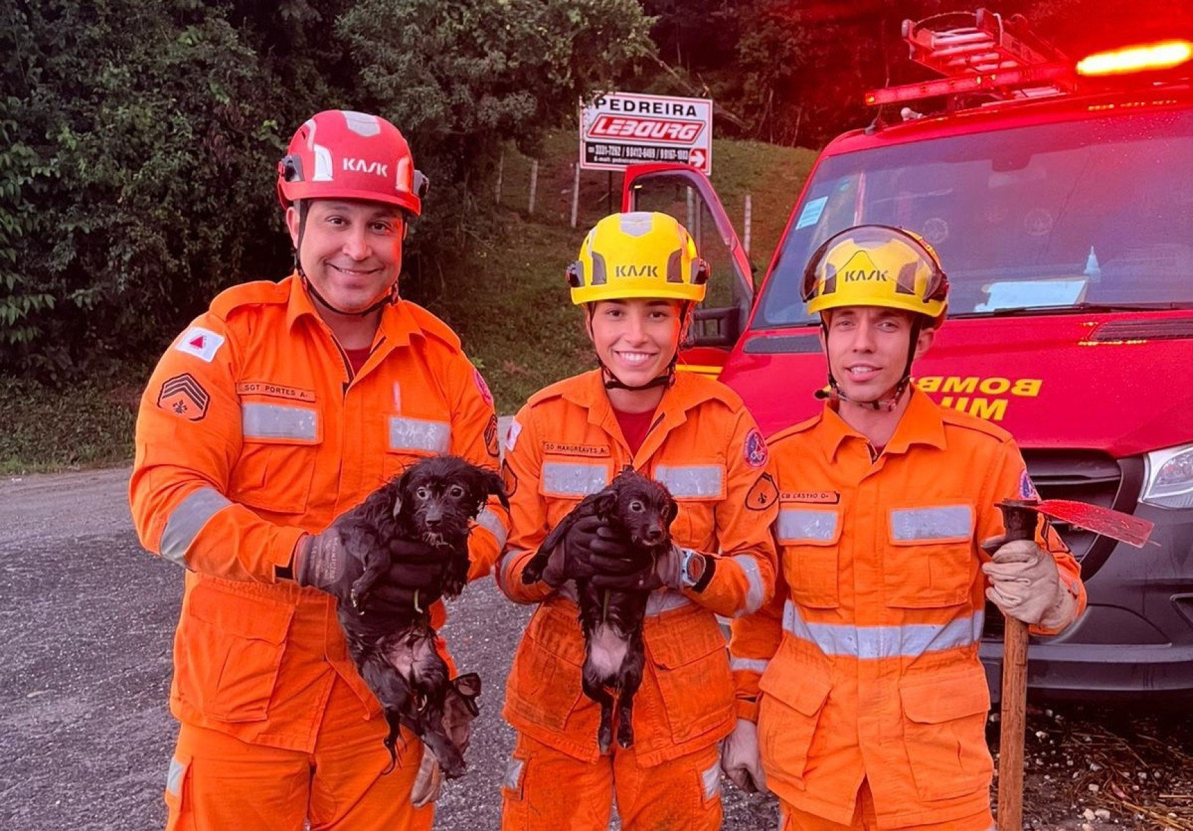 O Corpo de Bombeiros (CBMMG) resgatou dois filhotes de cachorro que estavam presos dentro de um bueiro tubular de concreto à margem da BR-040, na altura do município de Ressaquinha, na Zona da Mata mineira, na tarde desta terça-feira (3/6).