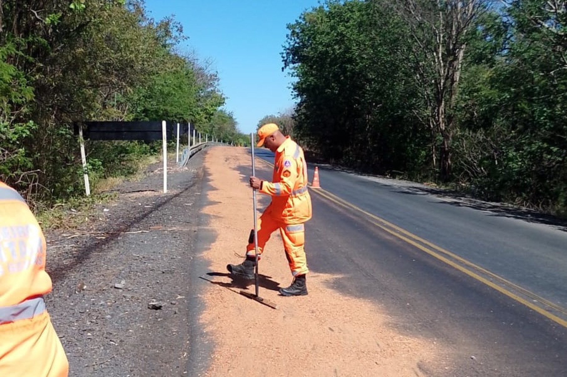 “O óleo, proveniente de frituras, escorria de maneira contínua sobre o asfalto, representando risco elevado de acidentes devido à perda de atrito entre pneus e pista”, pontuou a corporação em comunicado.