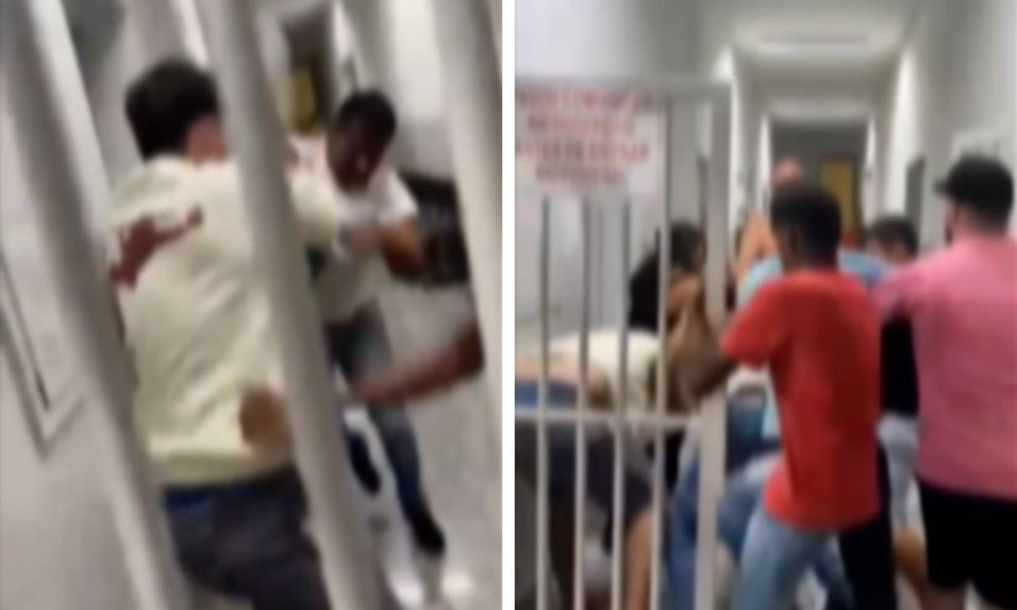 Os dois foram até o posto de saúde da cidade para receber atendimento. Enquanto o acusado das facadas aguardava ser chamado pela equipe médica, os filhos do homem agredido chegaram e começaram a agredir o suspeito das facadas com murros, chutes e golpes de capacetes. Veja o vídeo: