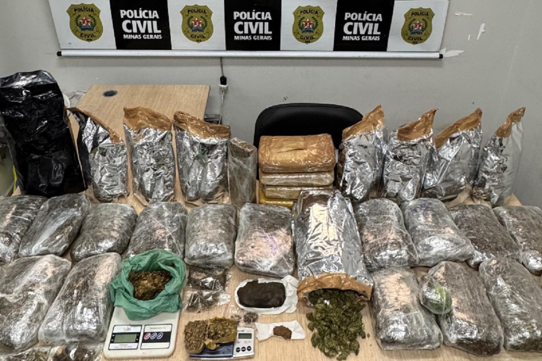 No Bairro Salgado Filho, foram presos três traficantes, de 27, 34 e 40 anos. Eles foram flagrados com 20 quilos de skunk. A prisão foi feita por policiais da 2ª Delegacia de Combate ao Narcotráfico.