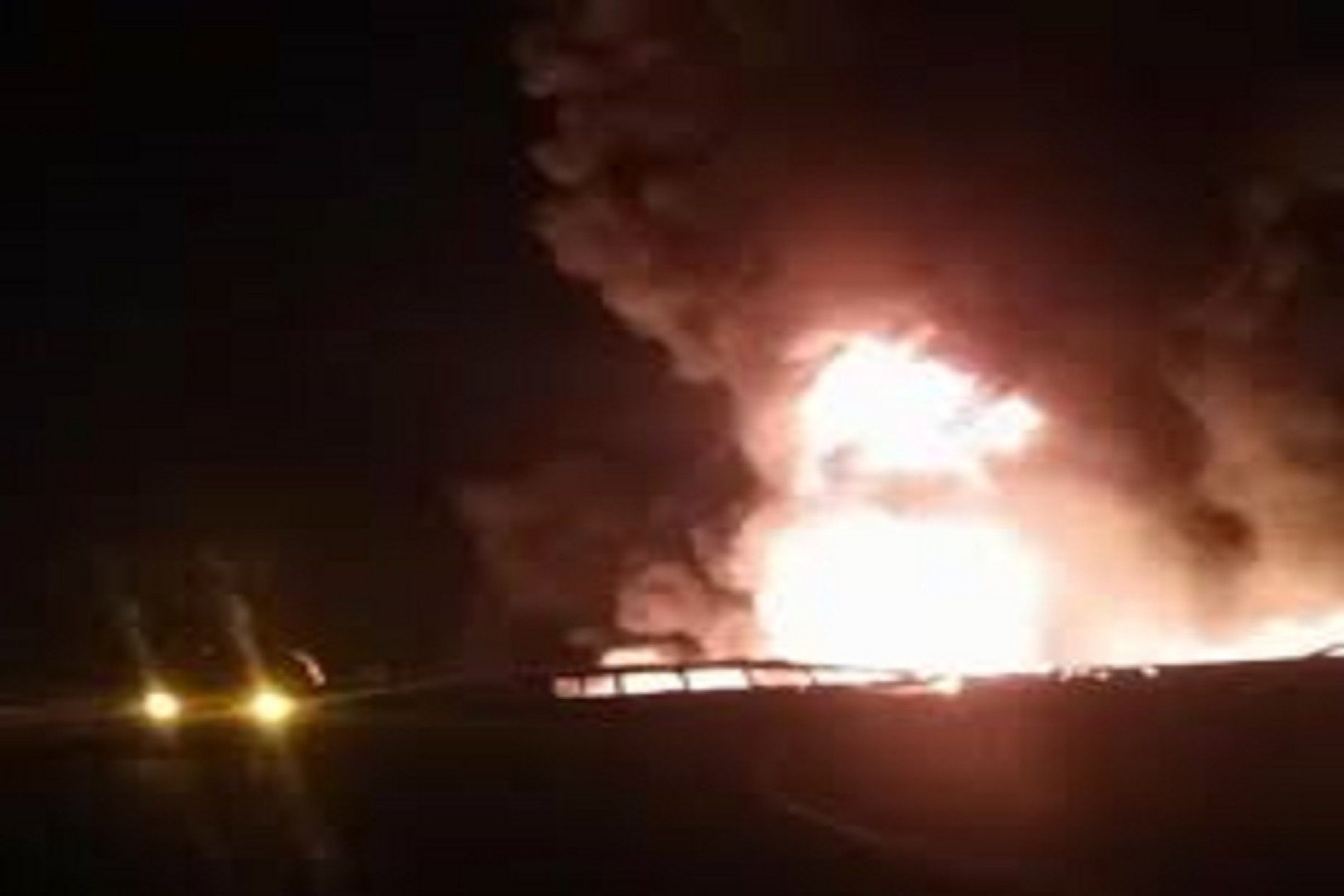 Carreta-tanque tombou e pegou fogo na BR-381, próximo a Bela Vista de Minas (MG)