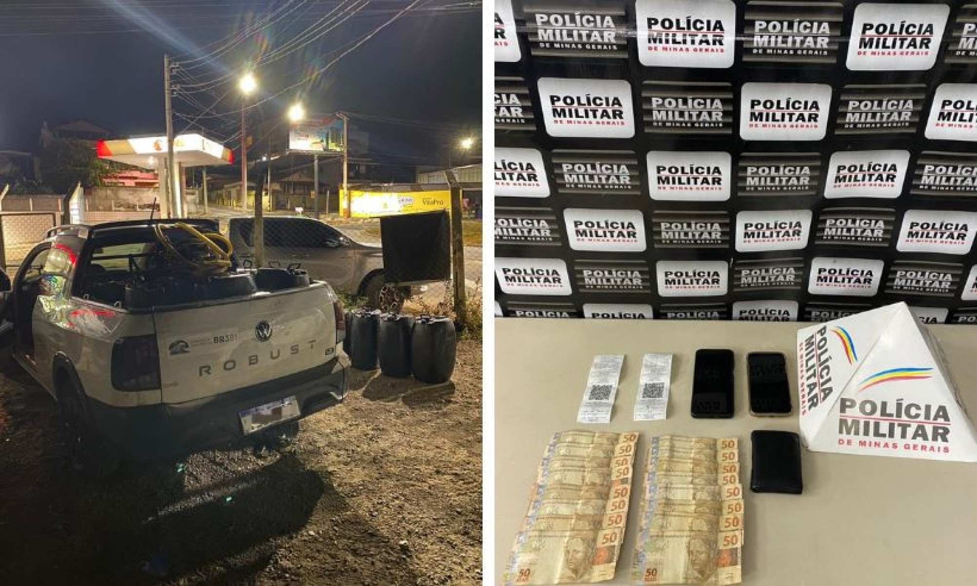 No momento da prisão, foram recuperados oito galões contendo 400 litros de diesel, além de R$ 800 em espécie encontrados com os suspeitos.