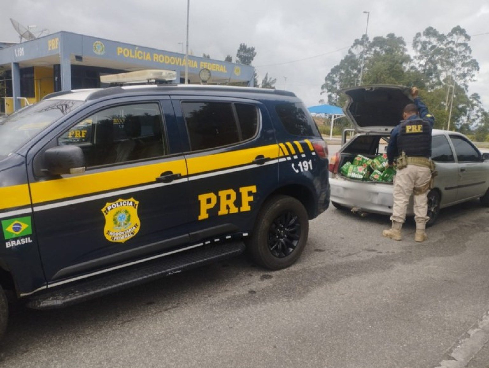 Conforme a PRF, as bebidas estavam em uma carreta envolvida em um acidente. O veículo tombou à margem da rodovia no período da manhã.