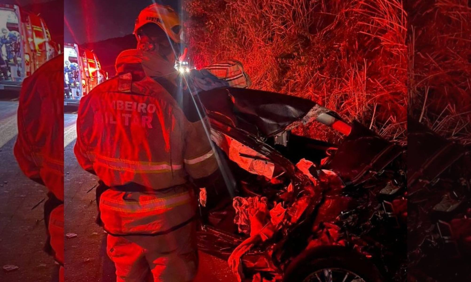 O Corpo de Bombeiros Militar de Minas Gerais (CBMMG) foi acionado às 19h25 para o acidente no sentido Ravena, em Sabará (MG), cerca de dois quilômetros depois do Posto Fumaça.